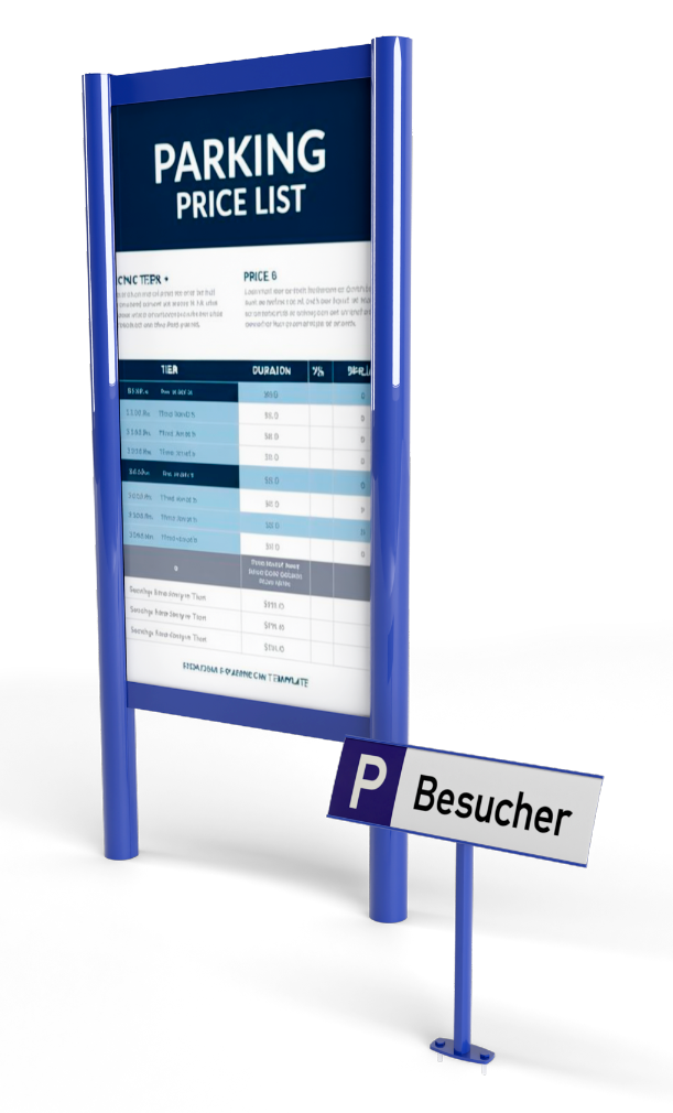 Sie möchten Parkplätze reservieren oder für bestimmte Gruppen vorhalten? Dann können Sie dies mit unserem Parkplatzschild tun. Es bietet mit einem Erdspieß die Möglichkeit direkt im Boden platziert oder mit einem Flansch aufgedübelt zu werden. Größere Schilder können zusätzliche Informationen für Parkende oder Preise enthalten.
