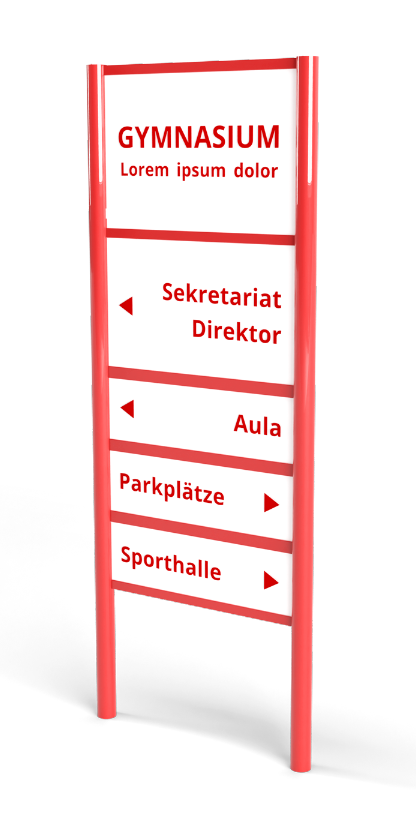 Klare Richtungsvorgaben und damit eine sichere Orientierung ermöglichen unsere Fahnenwegweiser. Das stabile und witterungsbeständige System hält auch anspruchsvollen Orten stand. Um Schäden durch Sticker oder Graffiti zu verhindern bieten wir Anti-Sticker- und Anti-Graffiti-Beschichtungen an. Diese können auch nur an einem Teil, zum Beispiel dem Standrohr, durchgeführt werden.