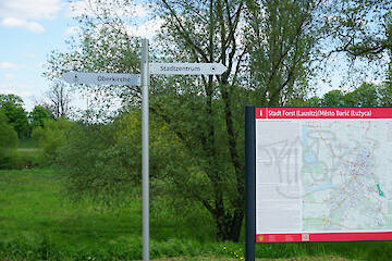 - Kombination von Aufstellern und Fahnenwegweisern