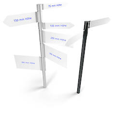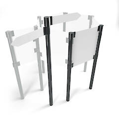 Unsere Lösung für ein leichtes und zugleich flexibles Aufsteller- oder Wegweisersystem ist Flex. Mit Hilfe von Schellen in verschiedenen Höhen, lassen sich Fahnen oder Platten verschiedener Stärken klemmen.