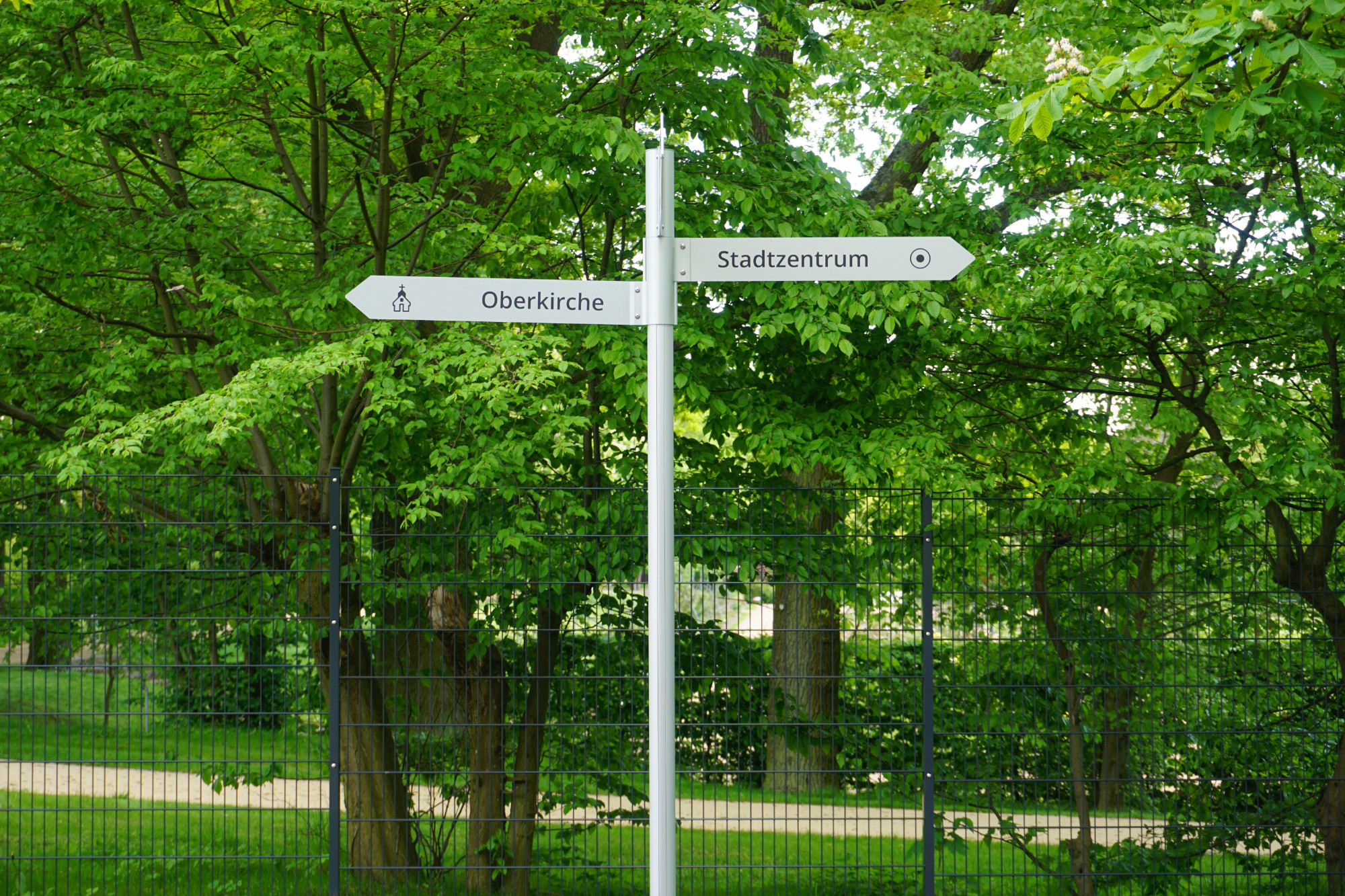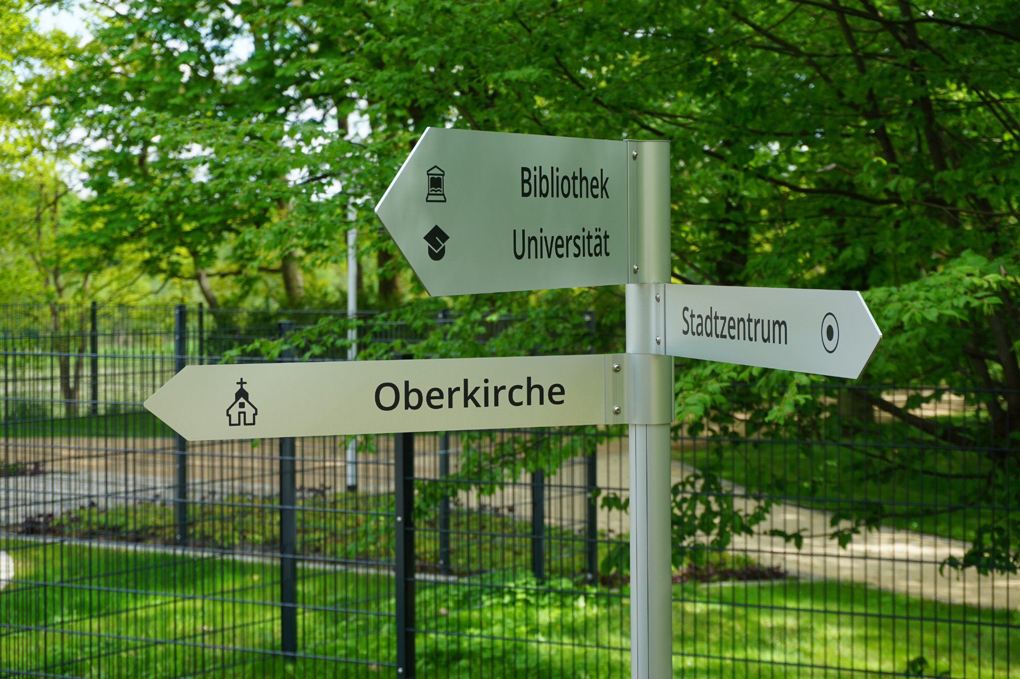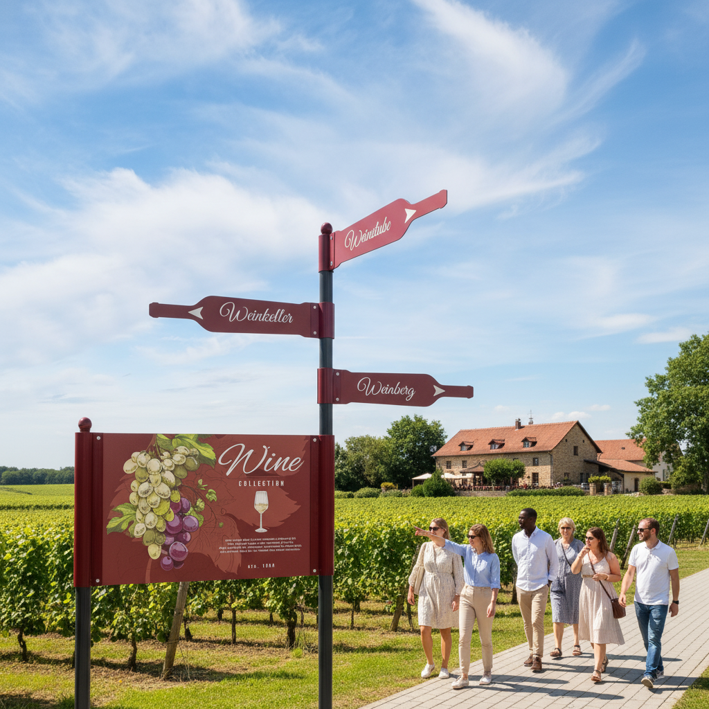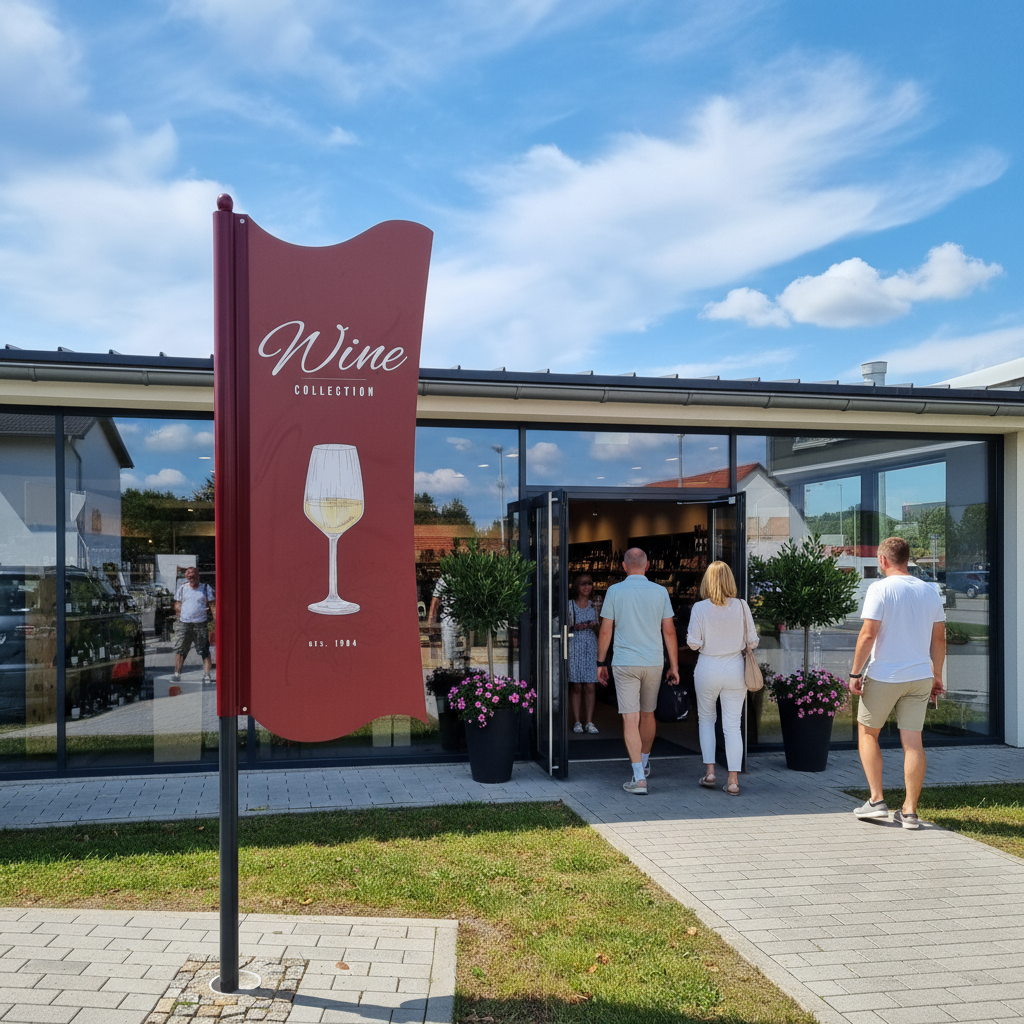 - Kombination von Aufstellern und Fahnenwegweisern