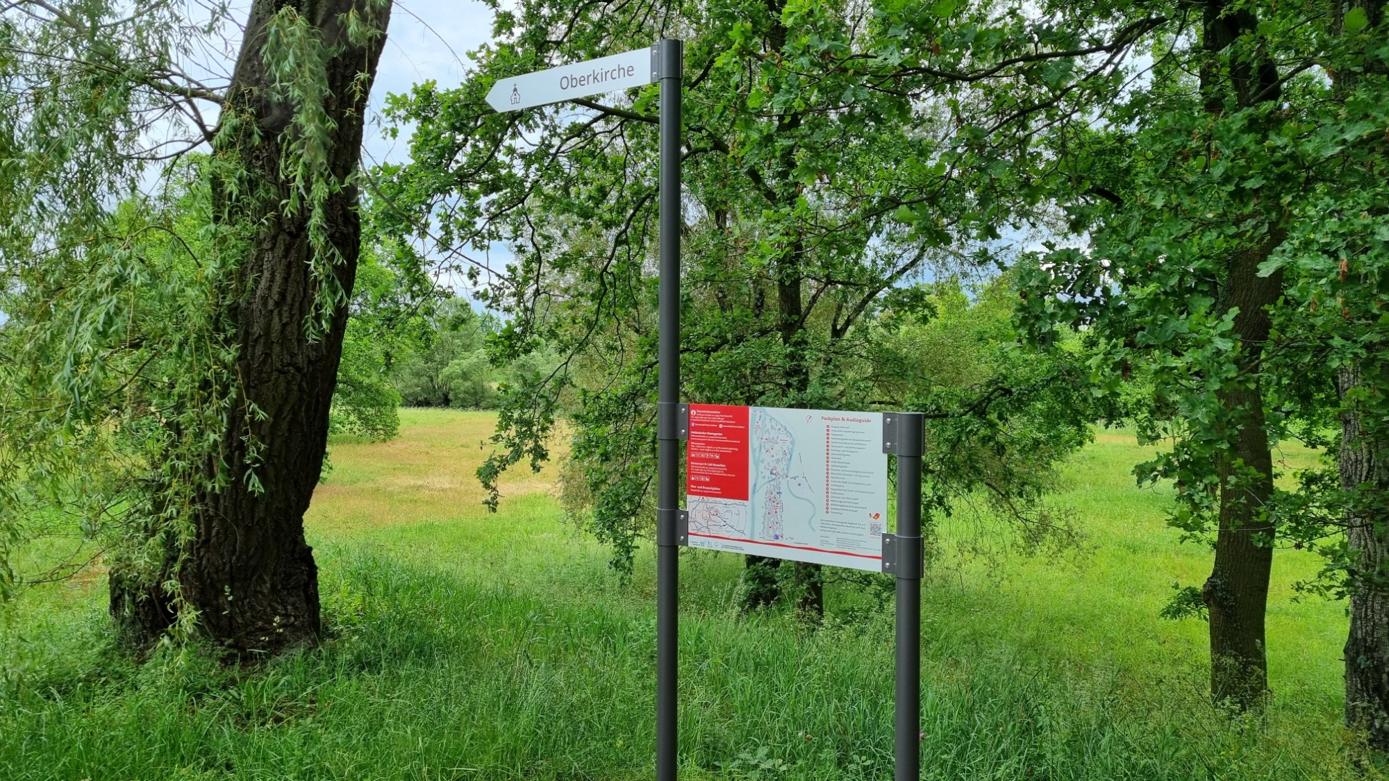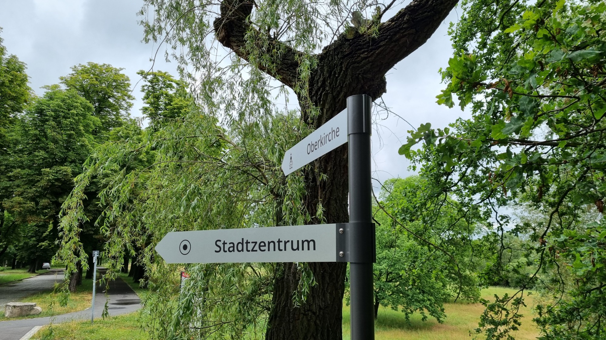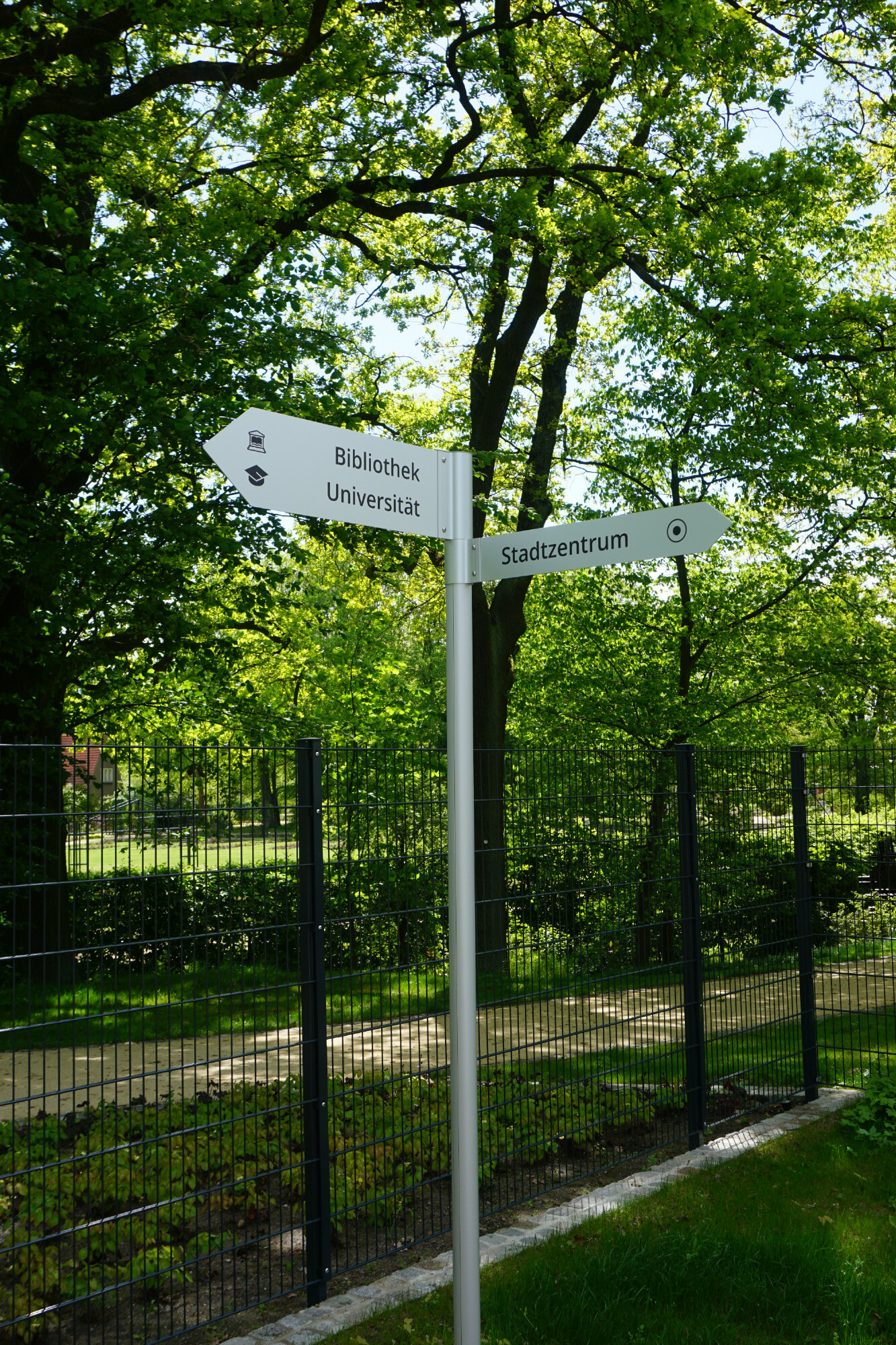 - Kombination von Aufstellern und Fahnenwegweisern