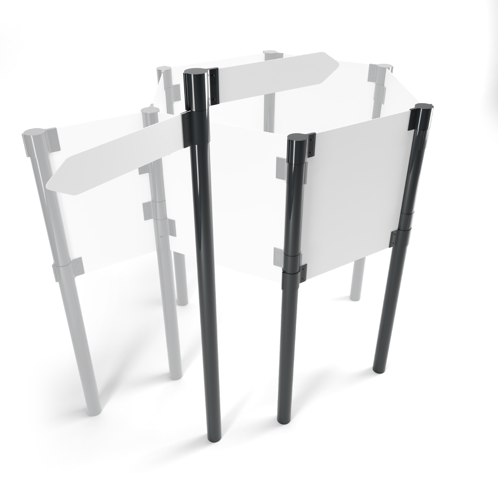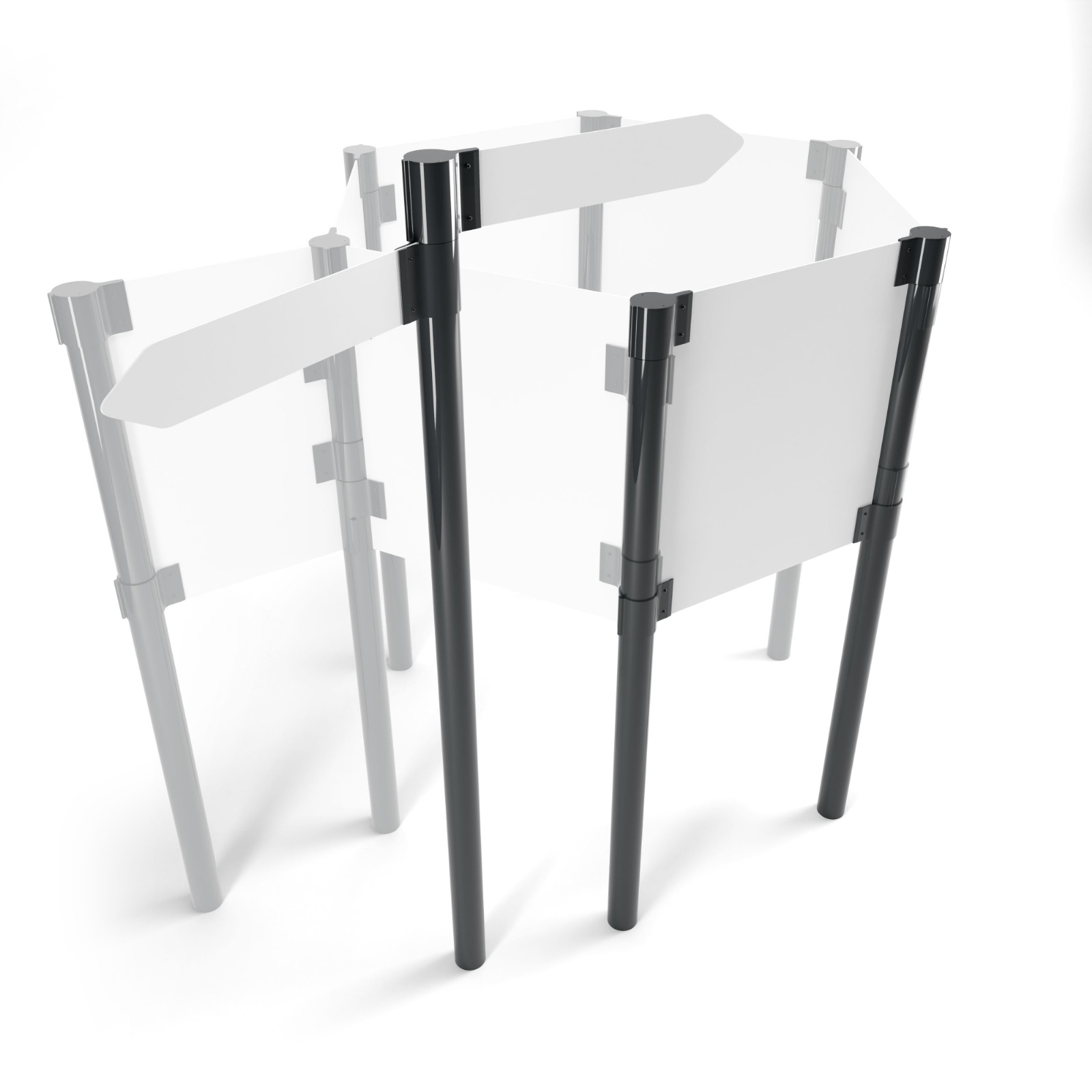 Unsere Lösung für ein leichtes und zugleich flexibles Aufsteller- oder Wegweisersystem ist Flex. Mit Hilfe von Schellen in verschiedenen Höhen, lassen sich Fahnen oder Platten verschiedener Stärken klemmen.