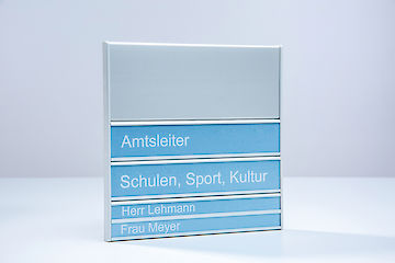 Türschilder, Wegweiser, Lagepläne sind mühelos realisierbar. Text- und Einschubpaneele sind wechselbar und werden mit Folie dauerhaft beschriftet.