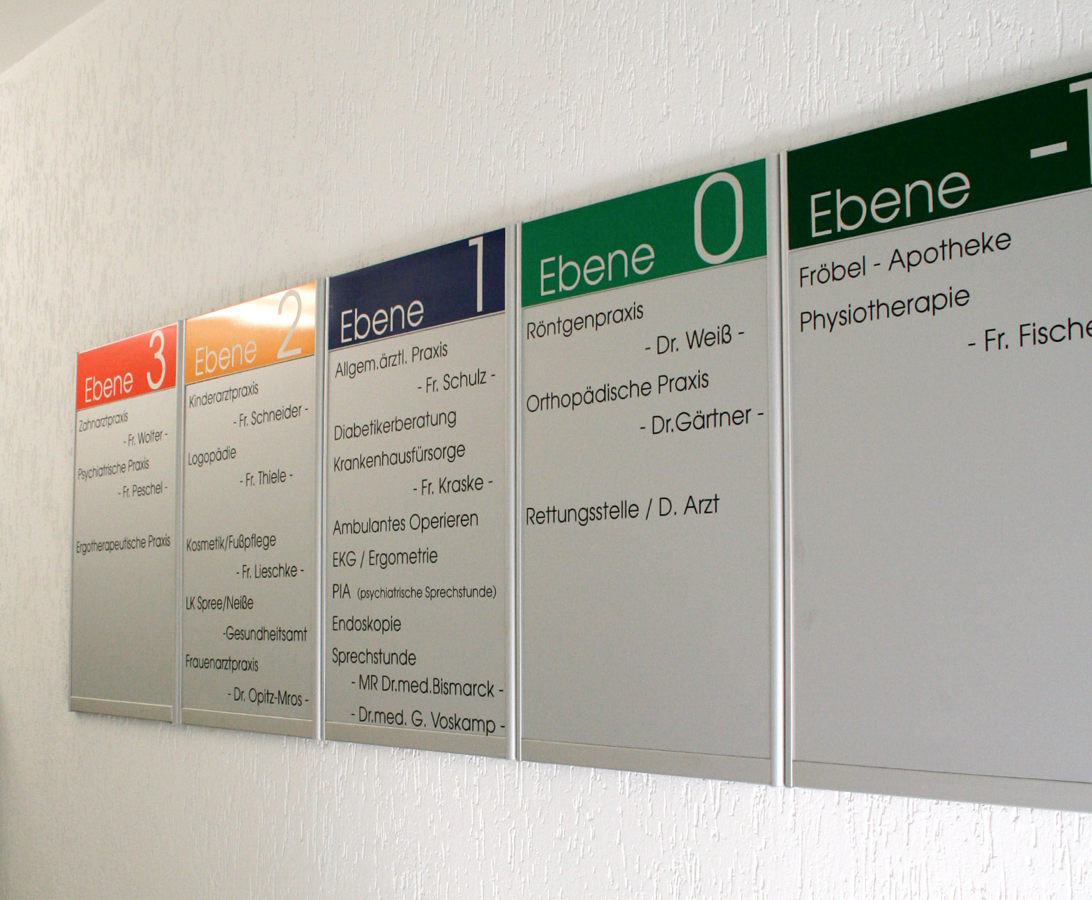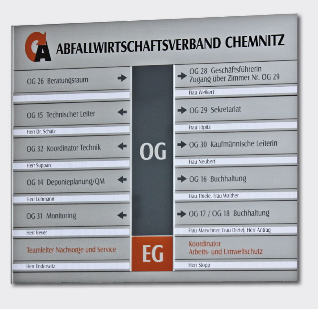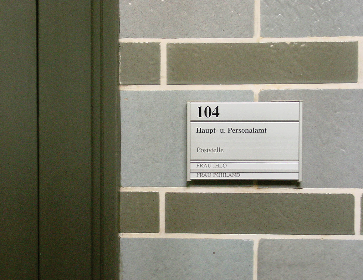 Türschilder, Wegweiser, Lagepläne sind mühelos realisierbar. Text- und Einschubpaneele sind wechselbar und werden mit Folie dauerhaft beschriftet.