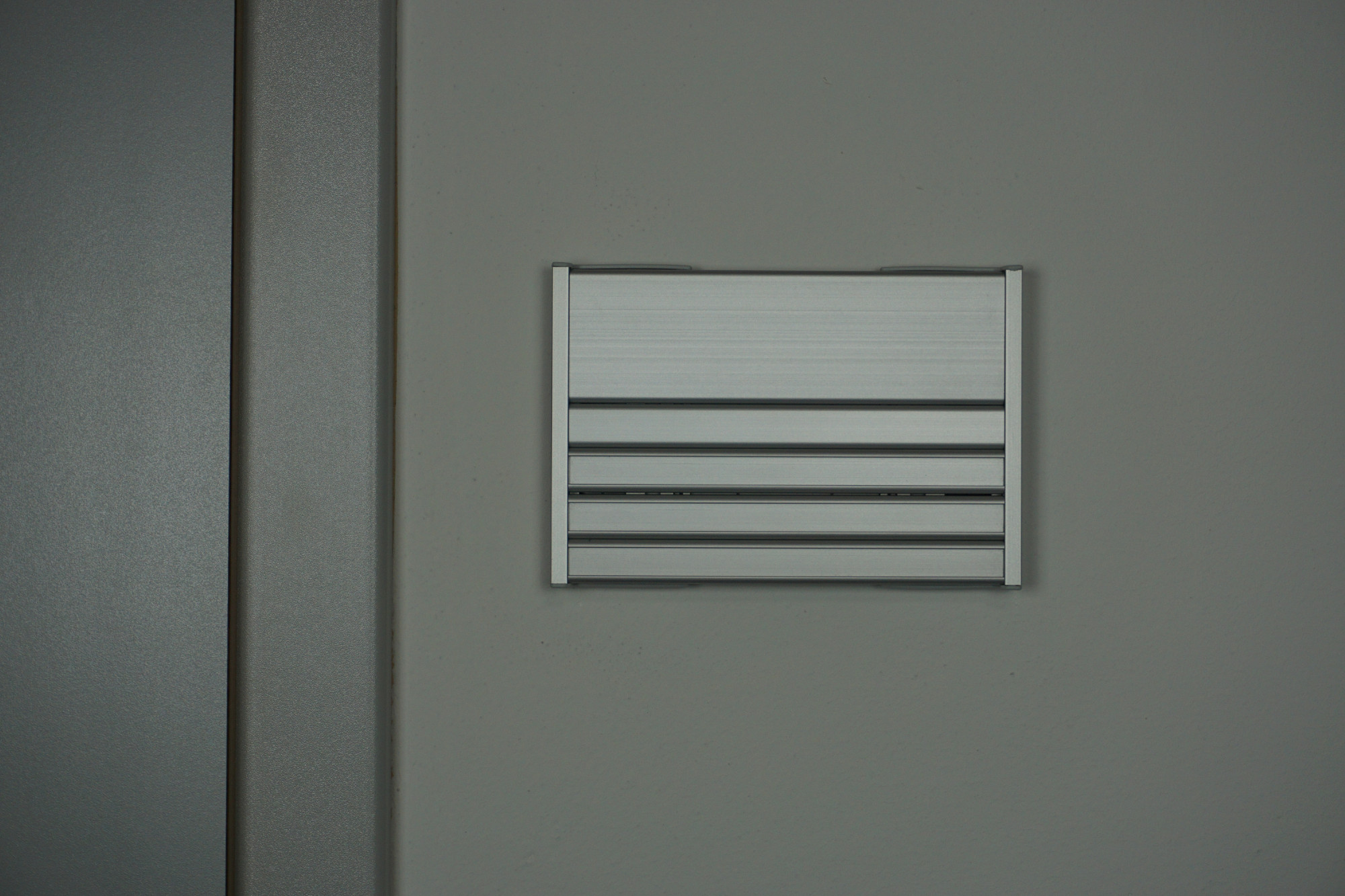 Modulares Paneelsystem für die Innenbeschilderung. Türschilder, Wegweiser und Lagepläne werden aus Text- und Einschubpaneelen gestaltet. Sie sind wechselbar und mitFolie oder Einschubstreifen beschriftbar.