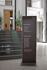 Der schmale umlaufende Rahmen, mit der geringen Bautiefe von nur 12 mm, gibt der Innenbeschilderung von Gebäuden einen dezenten und eleganten Ausdruck.