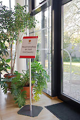 System mit schmalen, umlaufenden Rahmen. Gibt der Innenbeschilderung von Gebäuden eine dezente und elegante Note. Die ausgeklügelte Rahmenbauweise des Schildes sorgt für einen sicheren Einlegerwechsel.