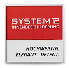 Mit dem SYSTEM 12 können alle Anforderungen an eine moderne Innenbeschilderung erfüllt werden.
