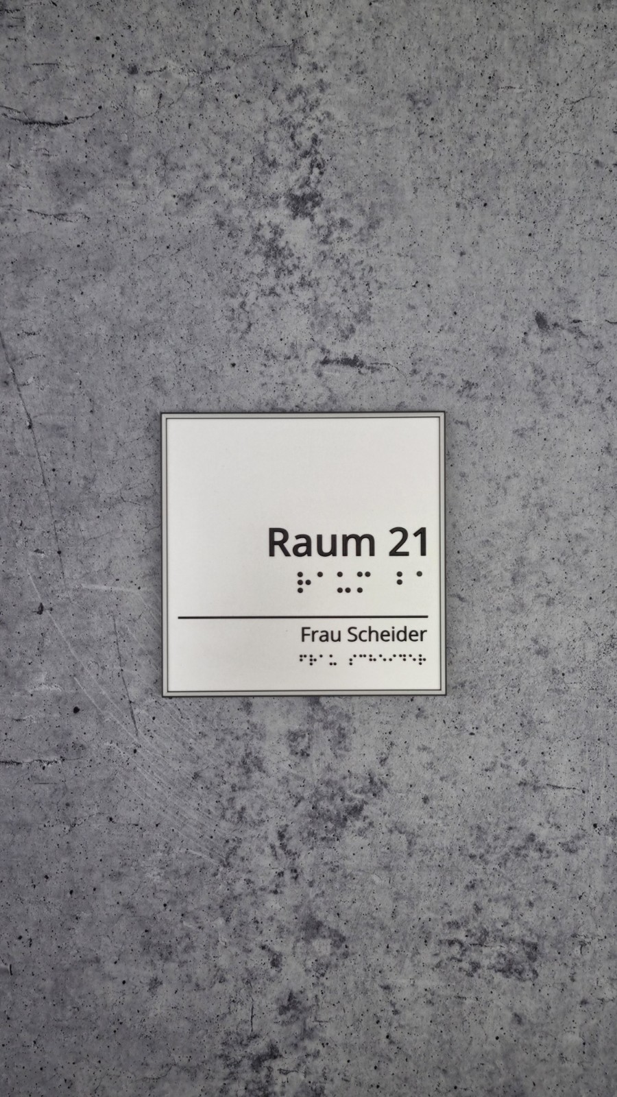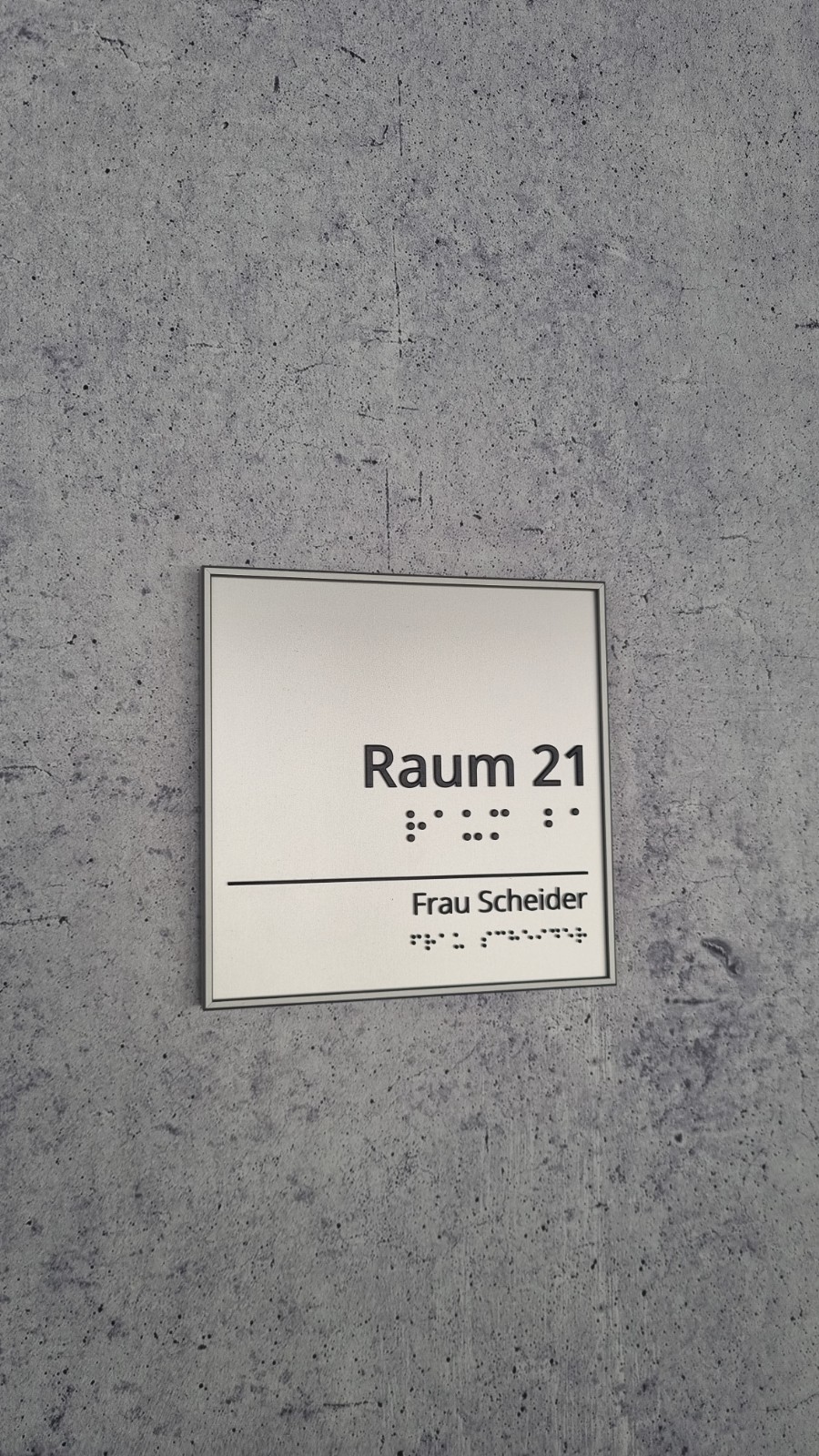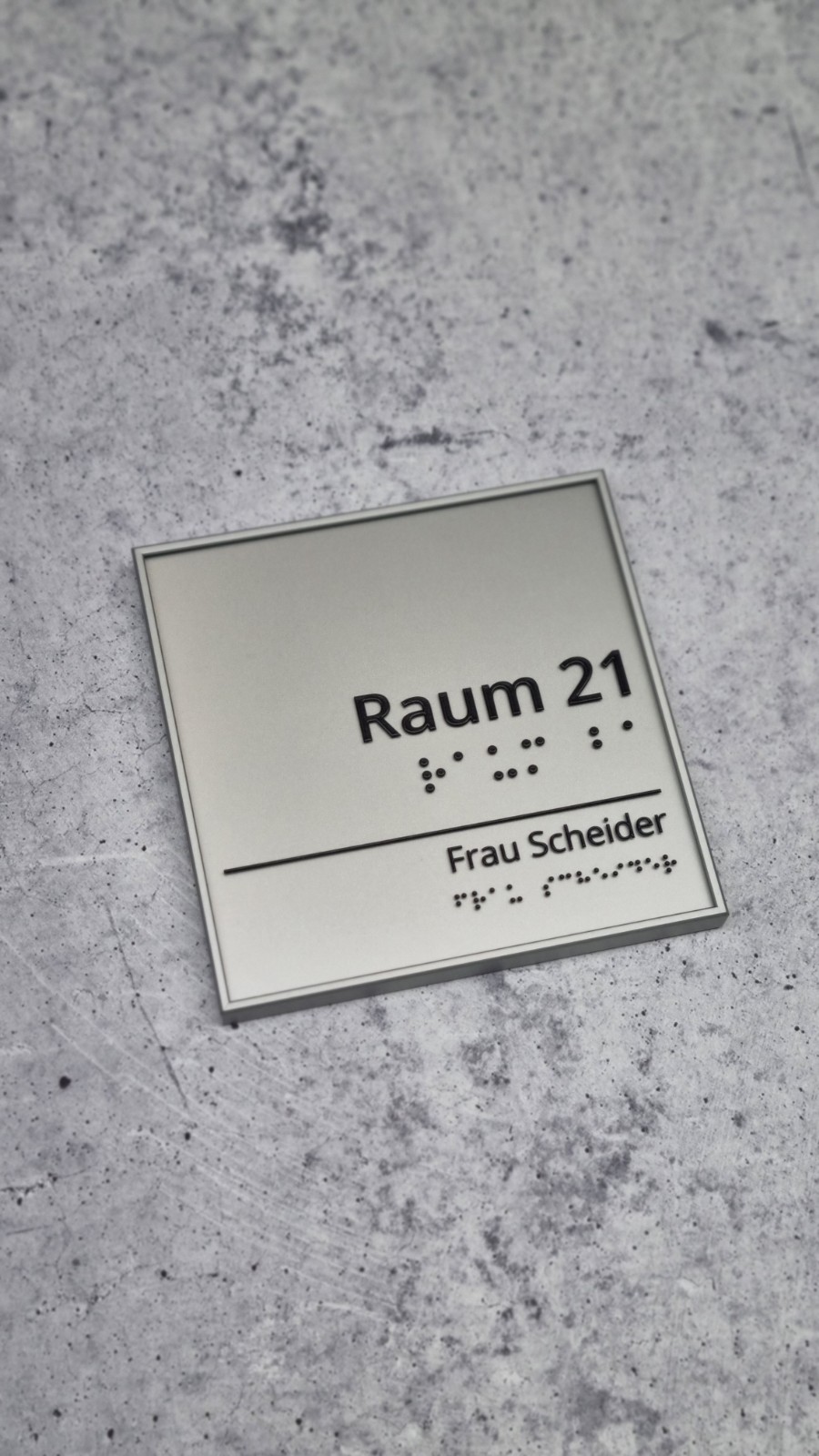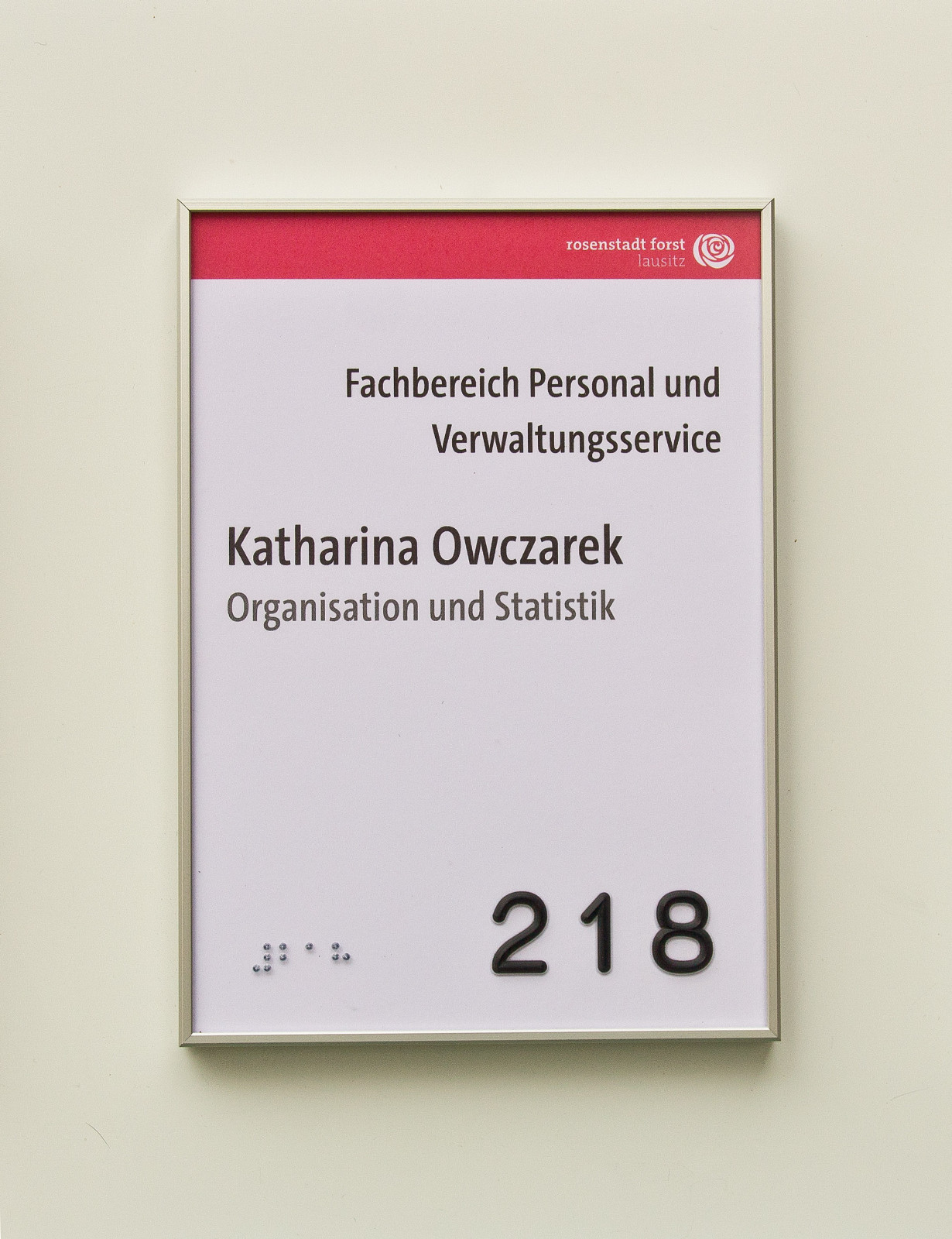 Der schmale umlaufende Rahmen, mit der geringen Bautiefe von nur 12 mm, gibt der Innenbeschilderung von Gebäuden einen dezenten und eleganten Ausdruck.