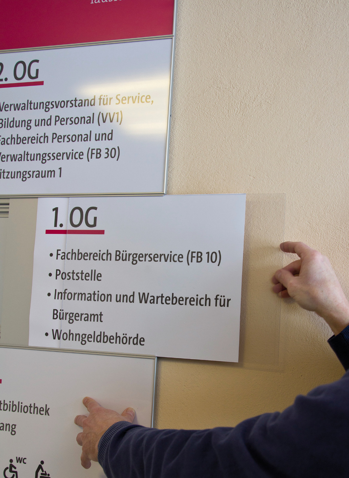 Die ausgeklügelte Rahmenbauweise der Schilder sorgt für einen einfachen Einlegerwechsel. Alle Schilder sind diebstahl- und manipulationssicher.