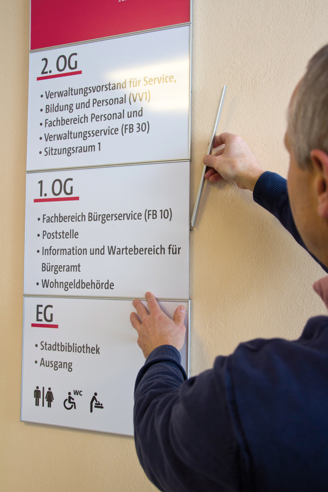 Mit dem SYSTEM 12 können alle Anforderungen an eine moderne Innenbeschilderung erfüllt werden.