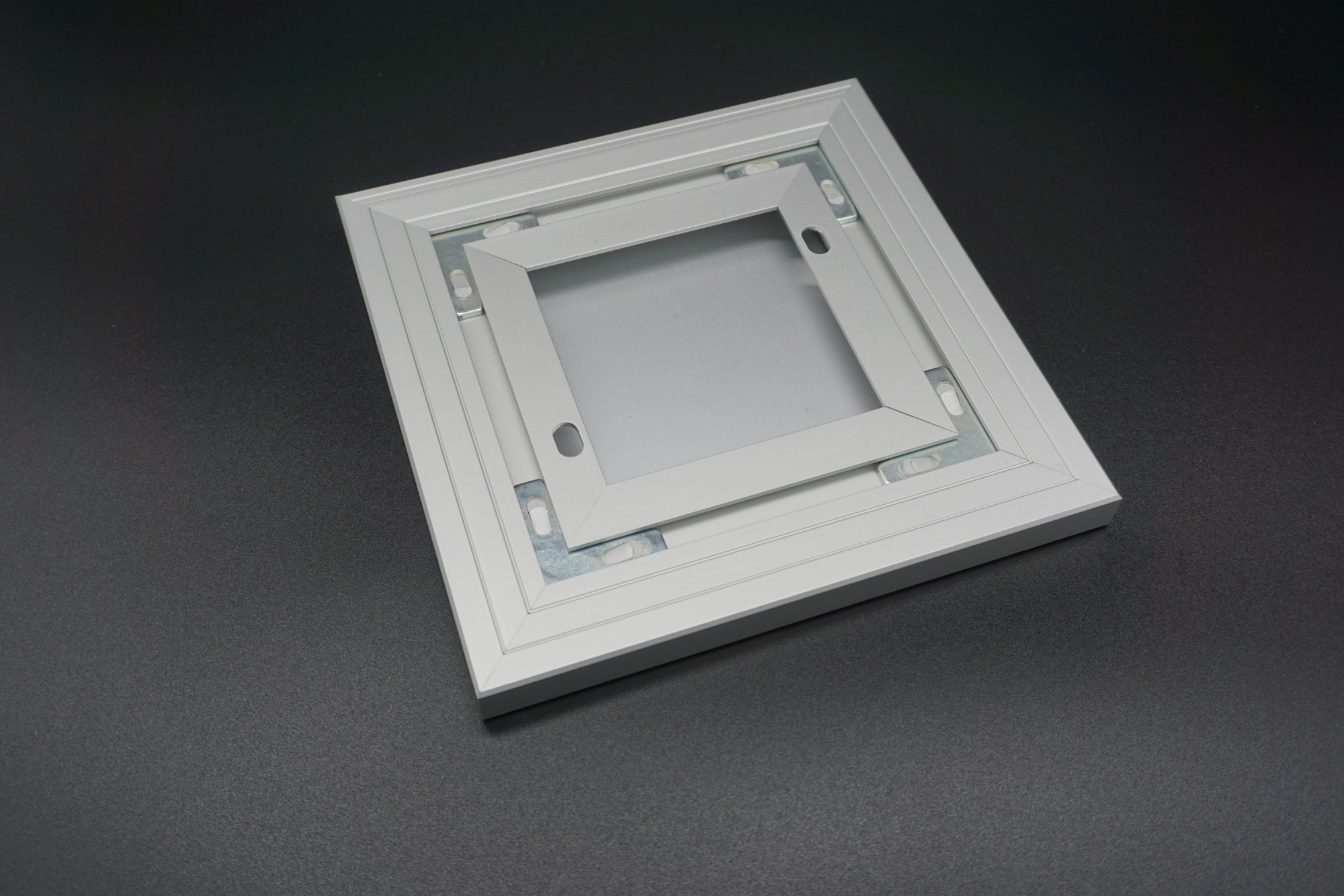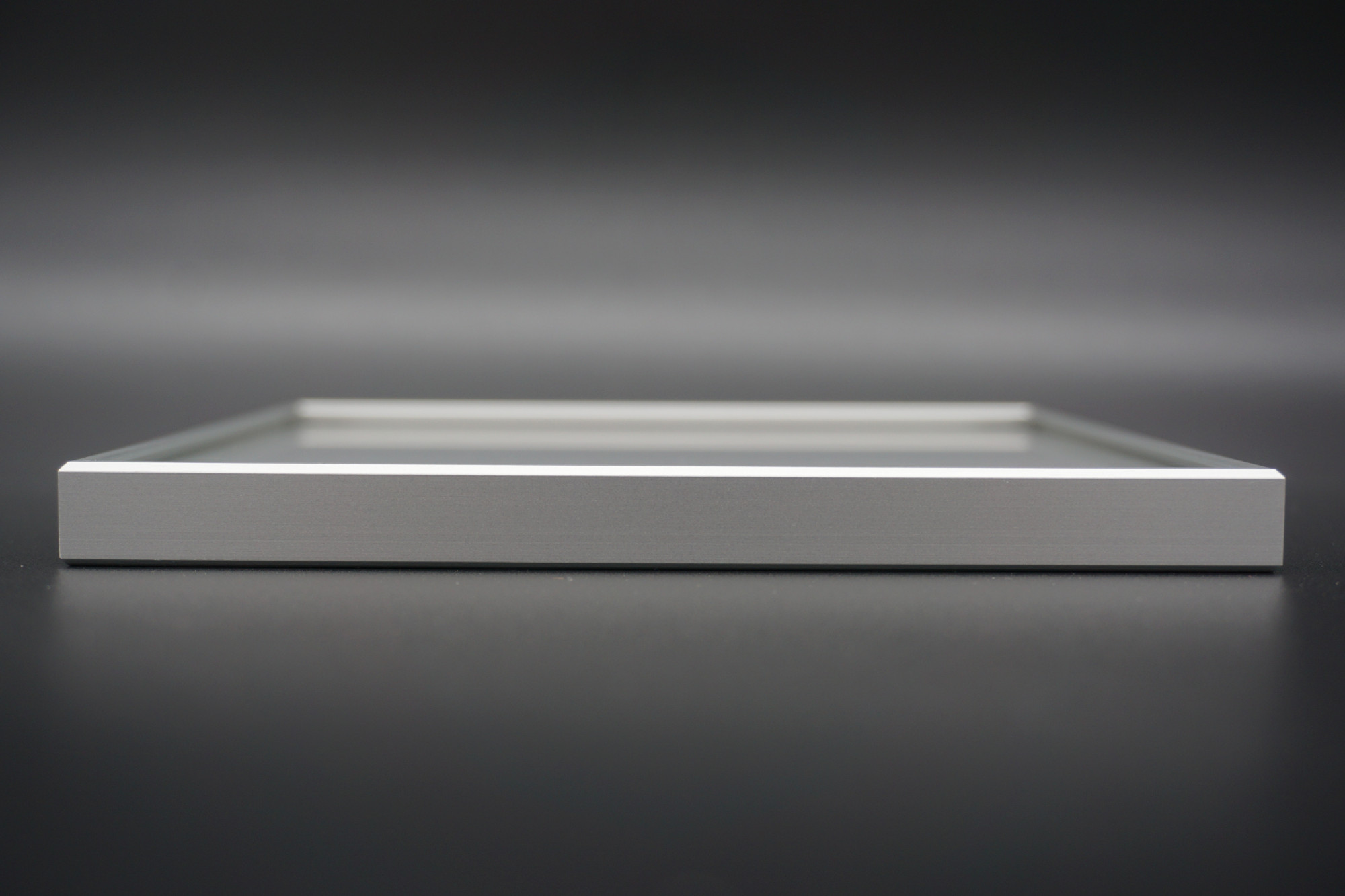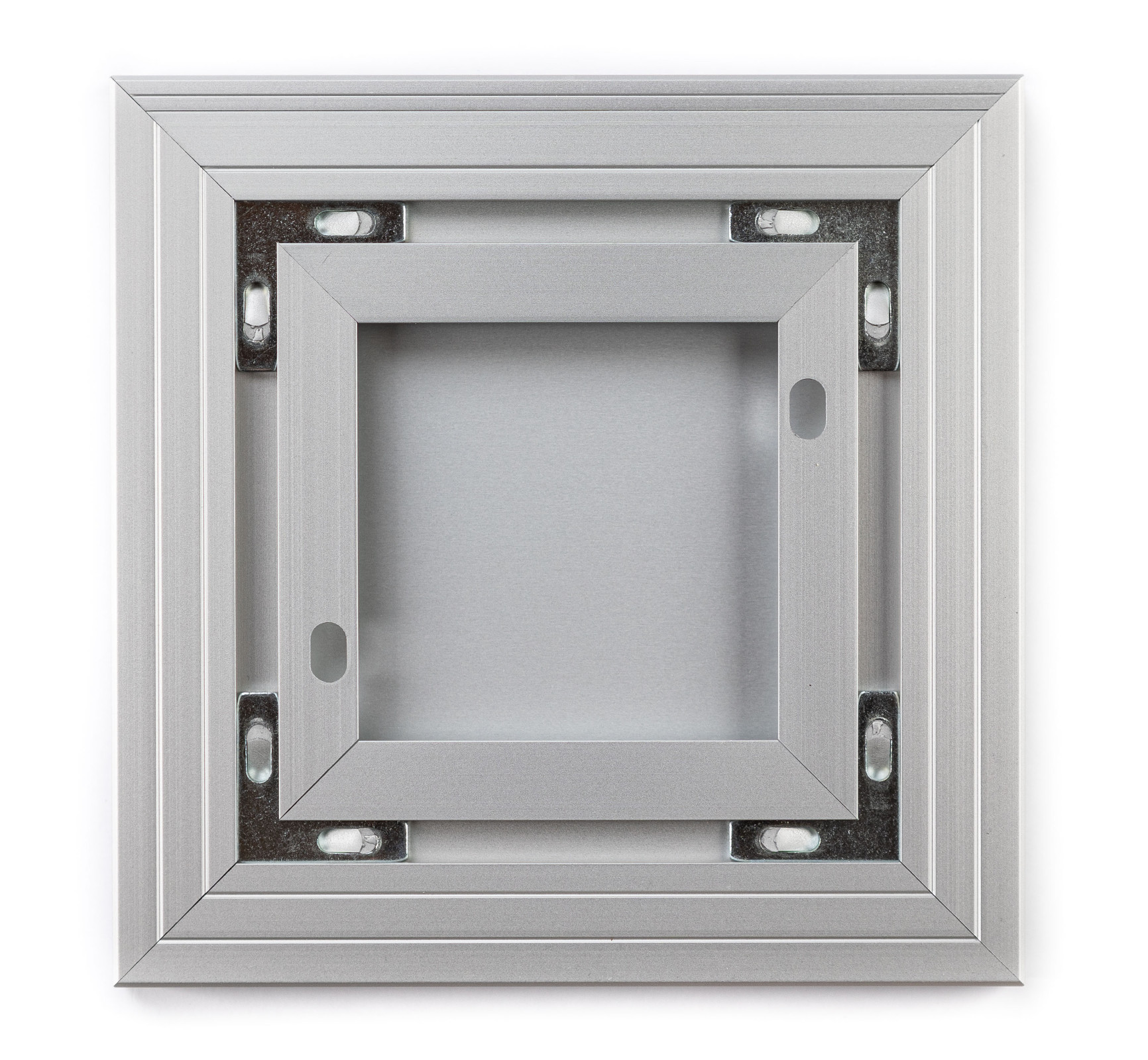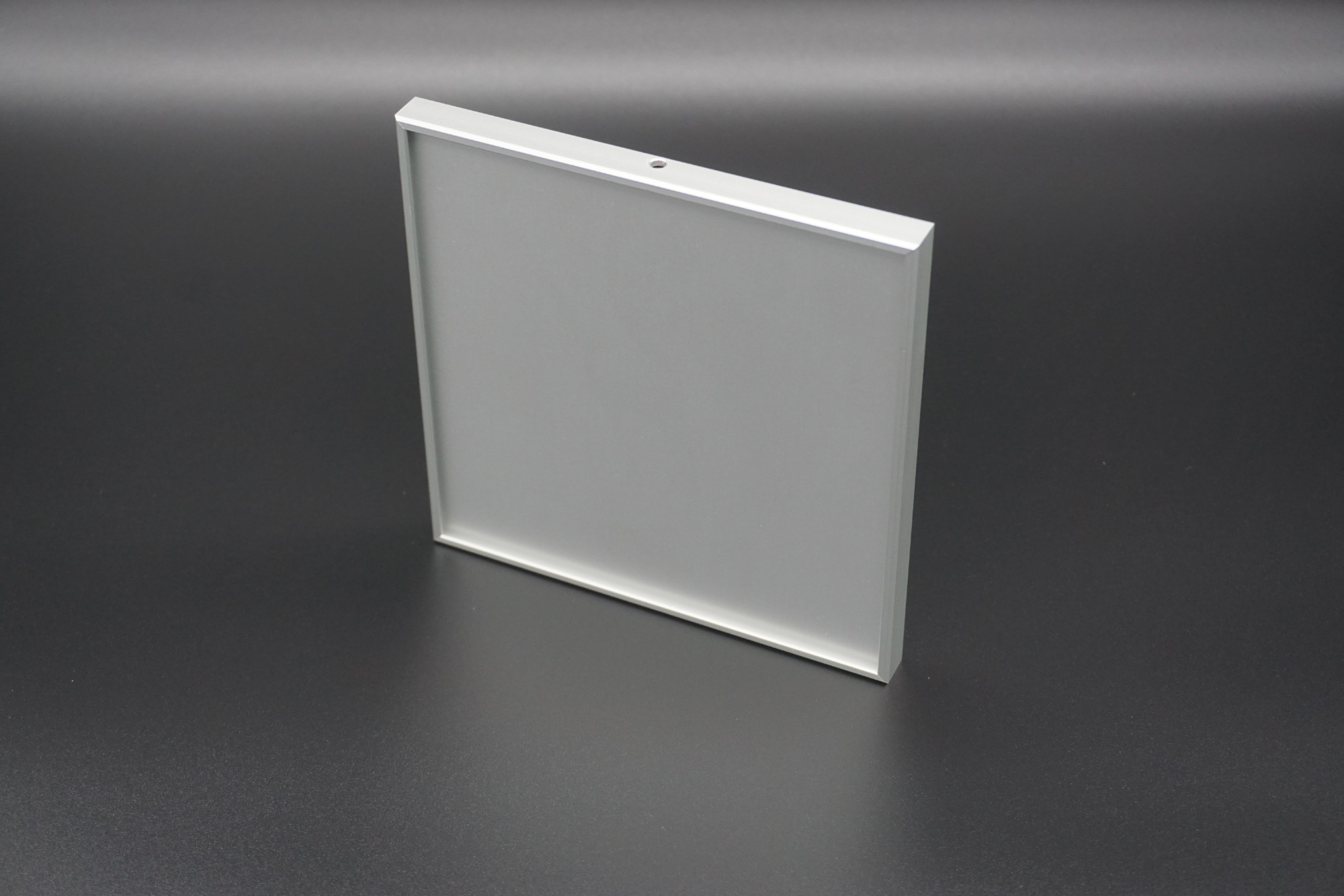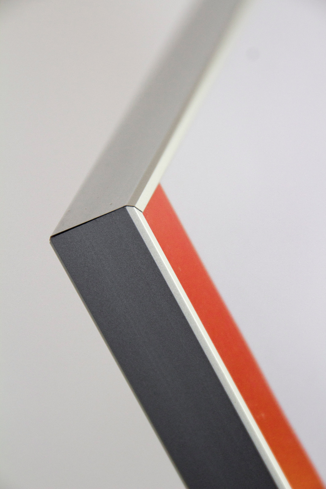 System mit schmalen, umlaufenden Rahmen. Gibt der Innenbeschilderung von Gebäuden eine dezente und elegante Note. Die ausgeklügelte Rahmenbauweise des Schildes sorgt für einen sicheren Einlegerwechsel.