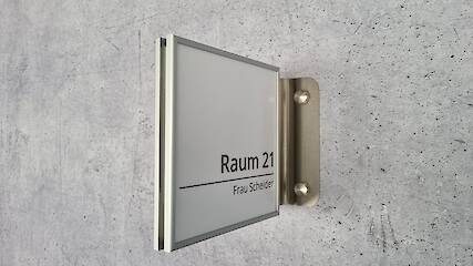 Ein moderner und gleichzeitig dezenter Rahmen wird durch die Grundplatte aus Aluminium oder Stahl stabilisiert. Die Türschilder und Wegweiser sind einfach im Handling und bieten dabei durch drei mögliche Farben für jede Anforderung die passende Lösung.