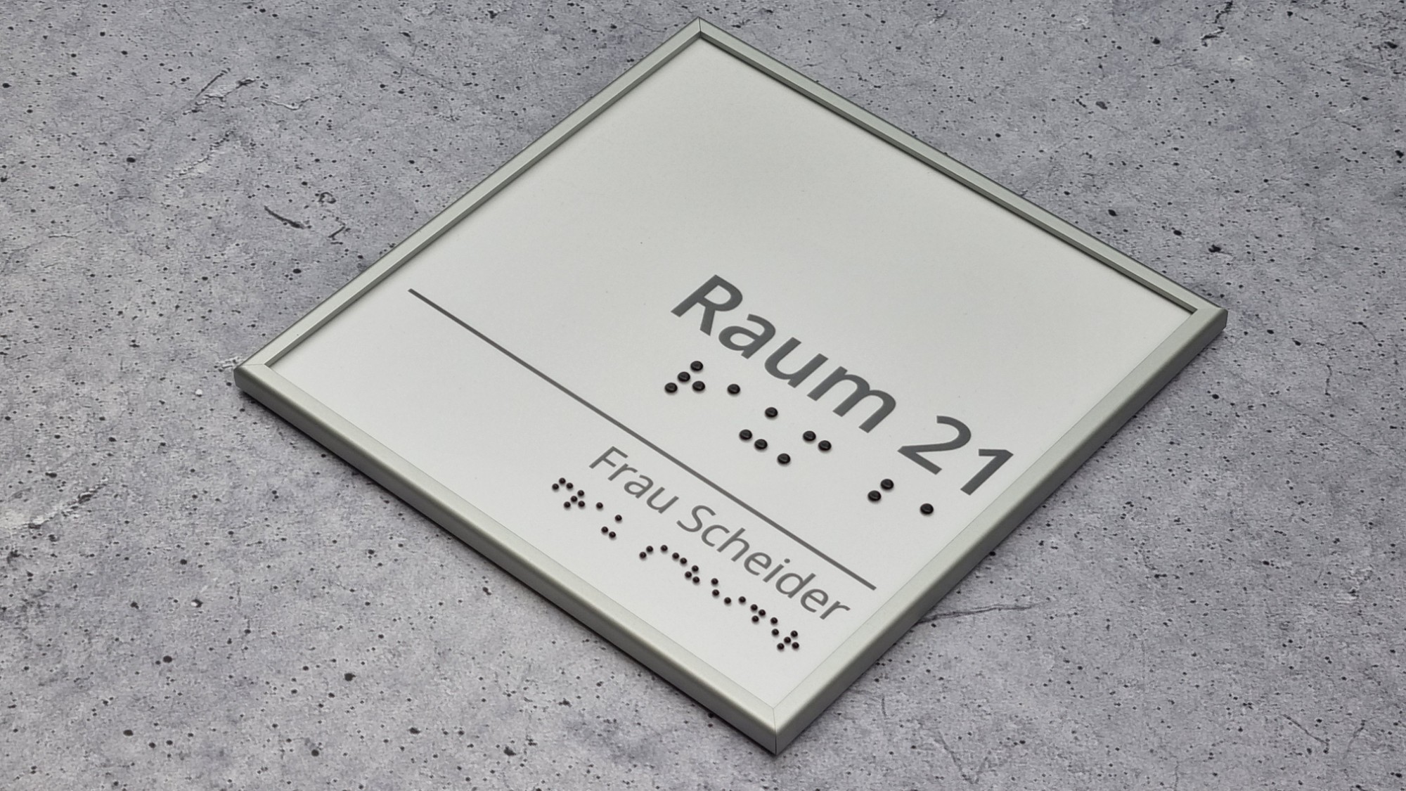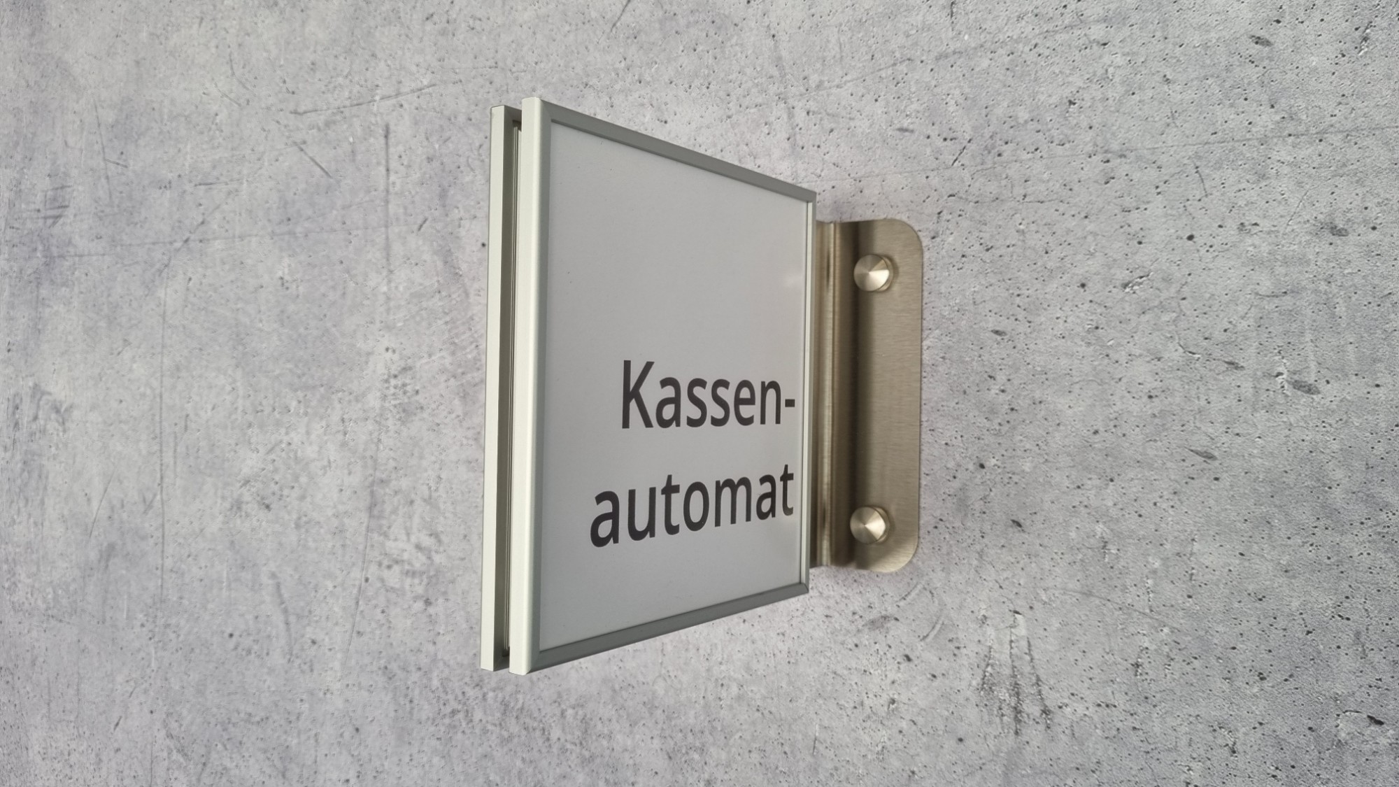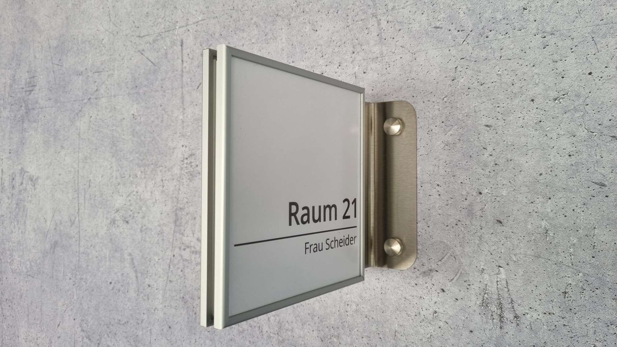 Ein moderner und gleichzeitig dezenter Rahmen wird durch die Grundplatte aus Aluminium oder Stahl stabilisiert. Die Türschilder und Wegweiser sind einfach im Handling und bieten dabei durch drei mögliche Farben für jede Anforderung die passende Lösung.