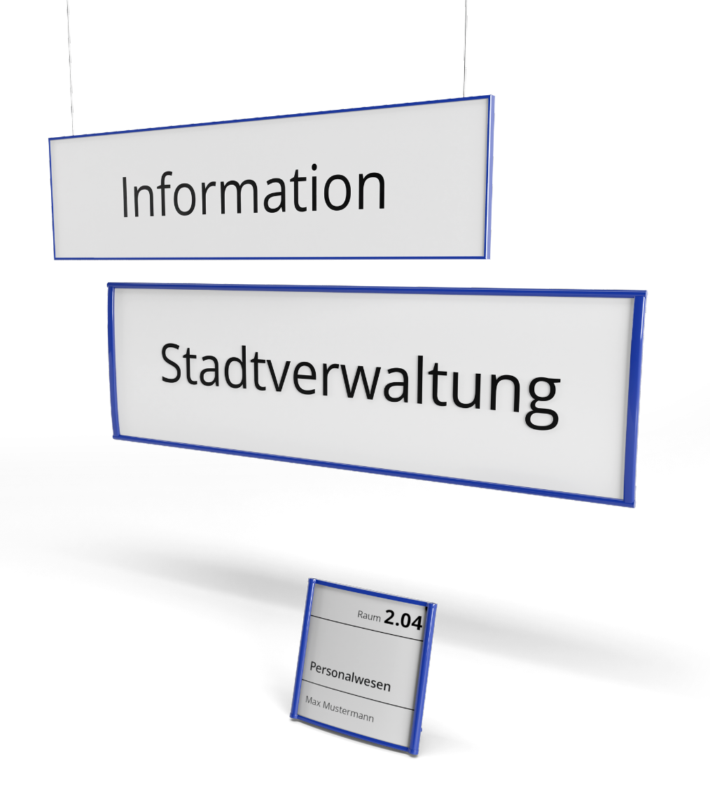Innenbeschilderung ermöglicht die Kennzeichnung von Räumen, Etagen und Richtungen für unkundige Besucher. Wir bieten alle gängigen Lösungen: Deckenhänger, Etagenwegweiser, Orientierungstafeln, Türschilder, Informationssäulen, Besucherstopper, Fahnenschilder, uvm. Wir bieten Ihnen Lösungen mit DIN-Formaten und Sonderlösungen nach Ihrem Wunsch.