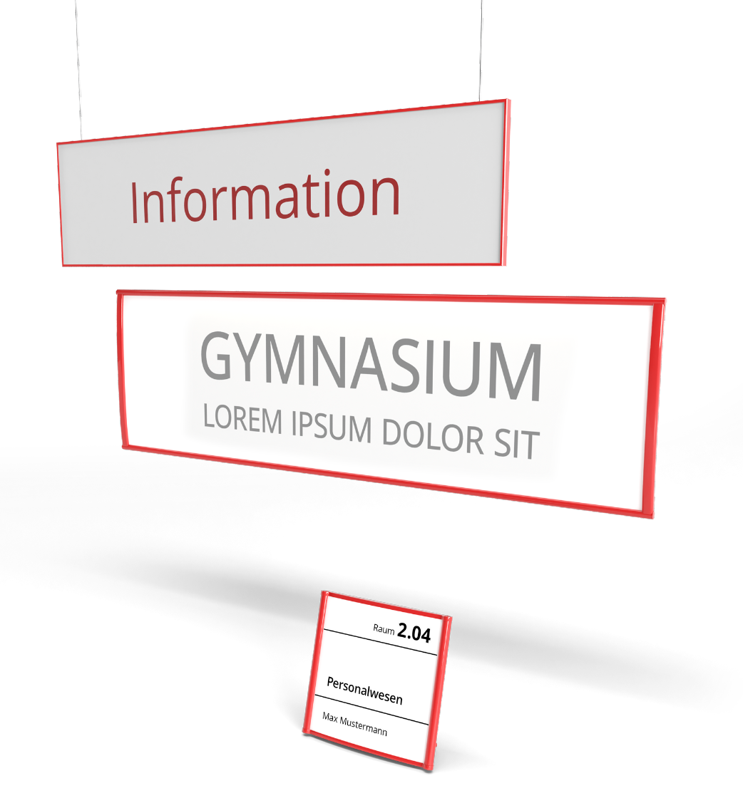Innenbeschilderungen ermöglichen die Kennzeichnung von Räumen, Etagen und Richtungen für unkundige Besucher. Wir bieten alle gängigen Lösungen: Deckenhänger, Etagenwegweiser, Orientierungstafeln, Türschilder, Informationssäulen, Besucherstopper, Fahnenschilder, uvm. So geben Sie Orientierung, wo sie benötigt wird.