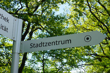 - Kombination von Aufstellern und Fahnenwegweisern