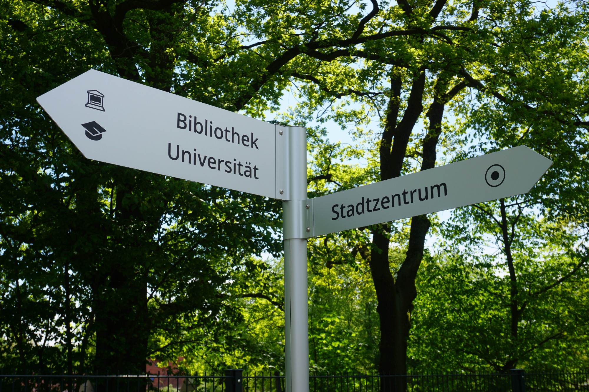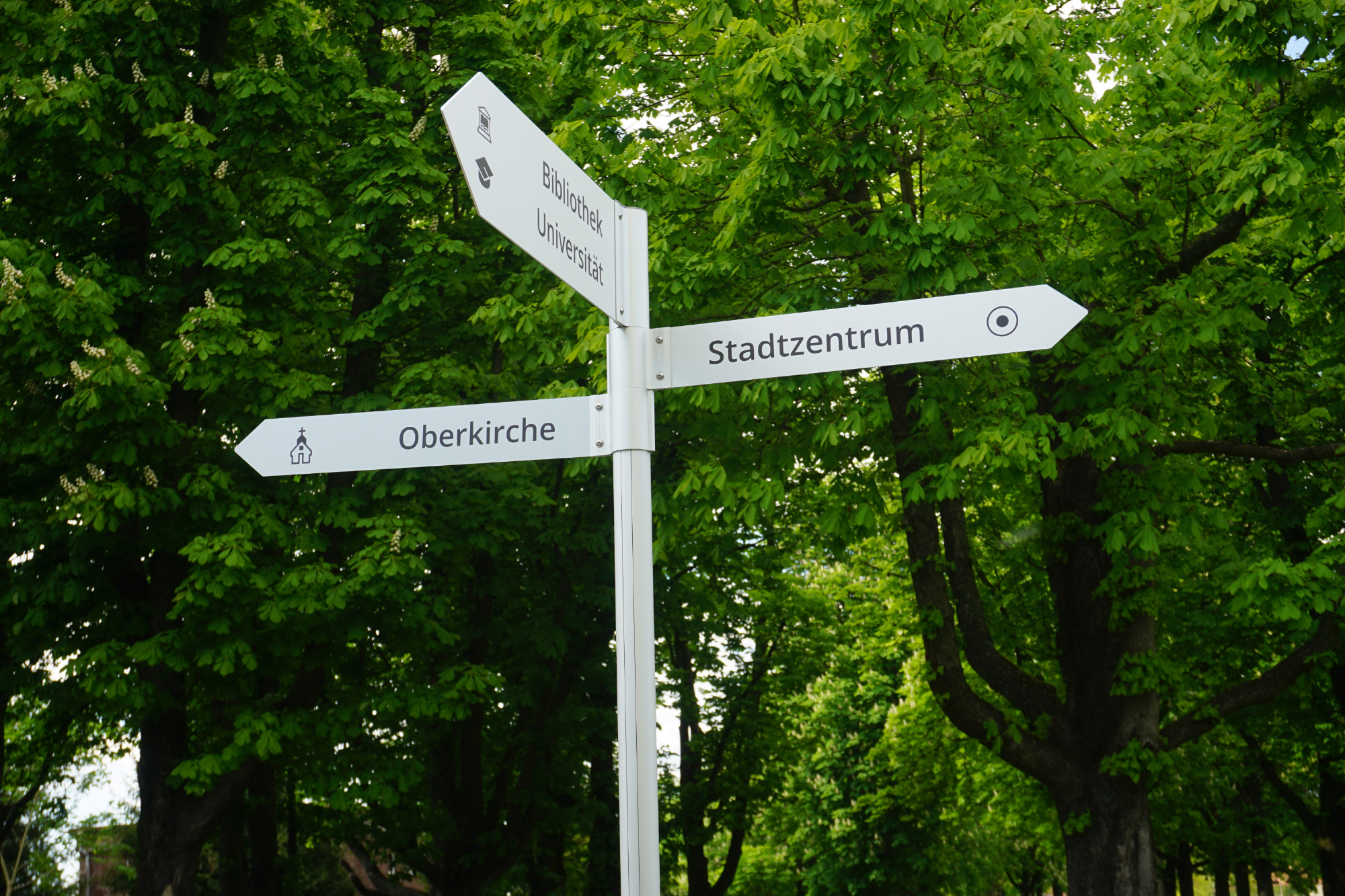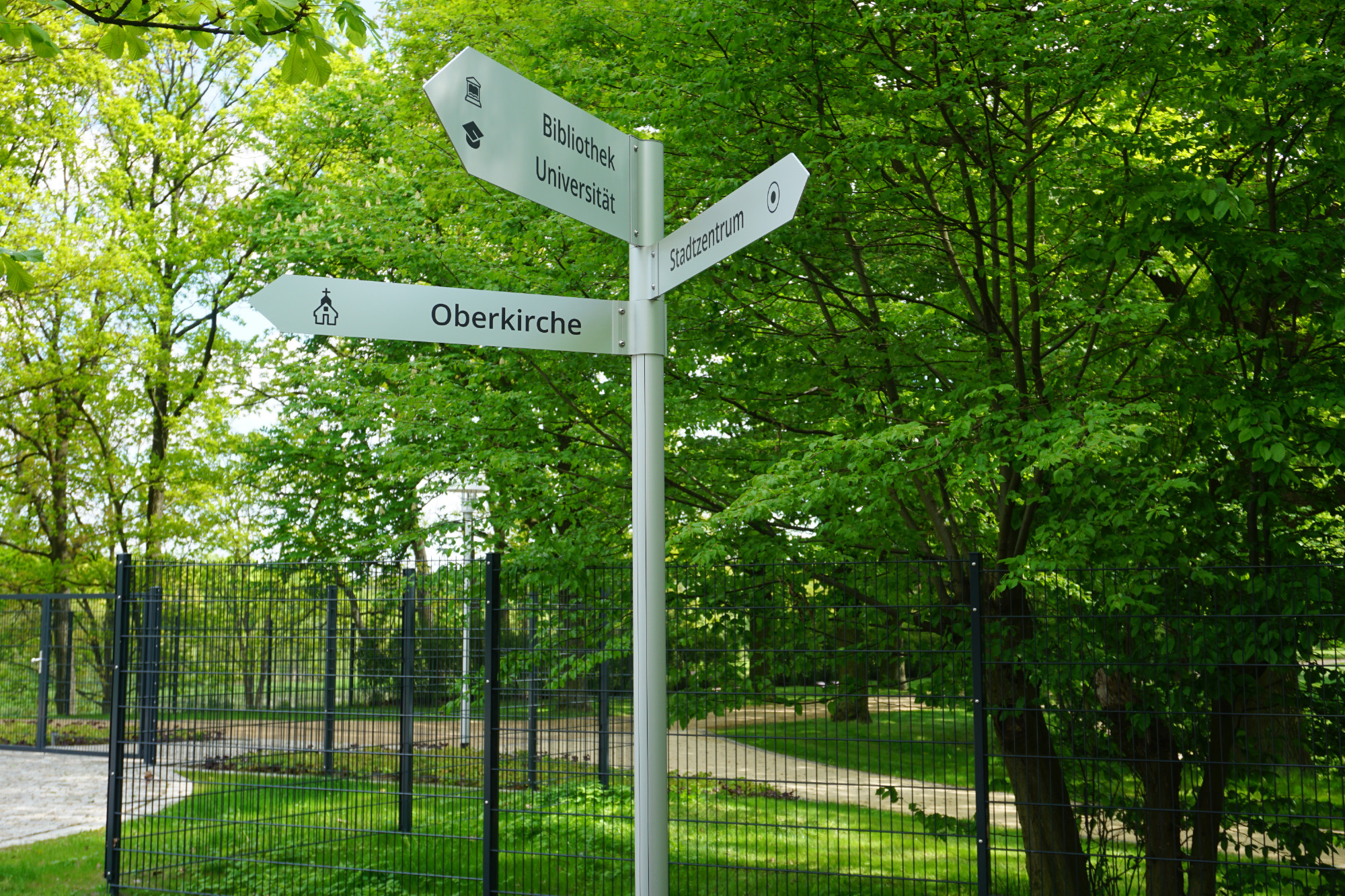 - Kombination von Aufstellern und Fahnenwegweisern