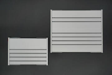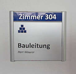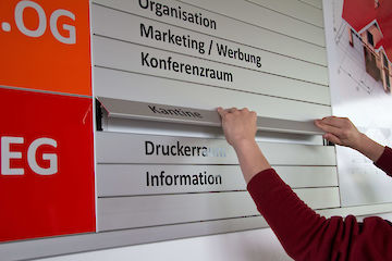 Türschilder, Wegweiser, Lagepläne sind mühelos realisierbar. Text- und Einschubpaneele sind wechselbar und werden mit Folie dauerhaft beschriftet.