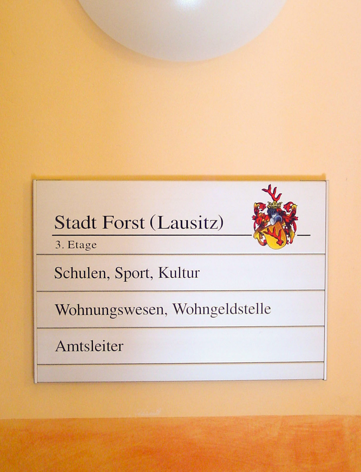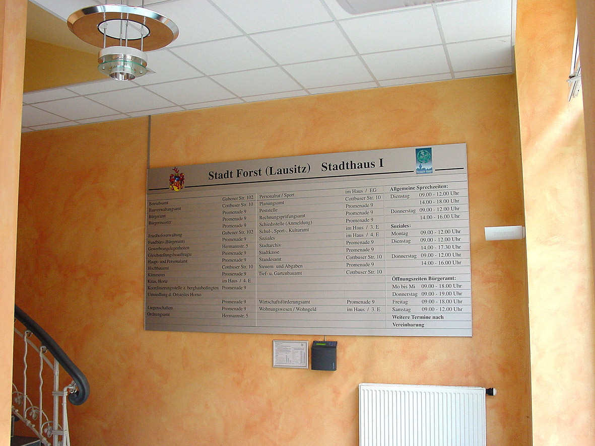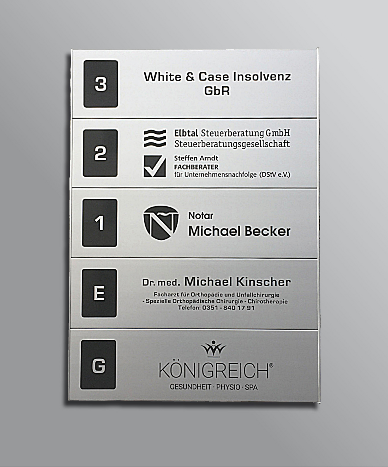 Türschilder, Wegweiser, Lagepläne sind mühelos realisierbar. Text- und Einschubpaneele sind wechselbar und werden mit Folie dauerhaft beschriftet.