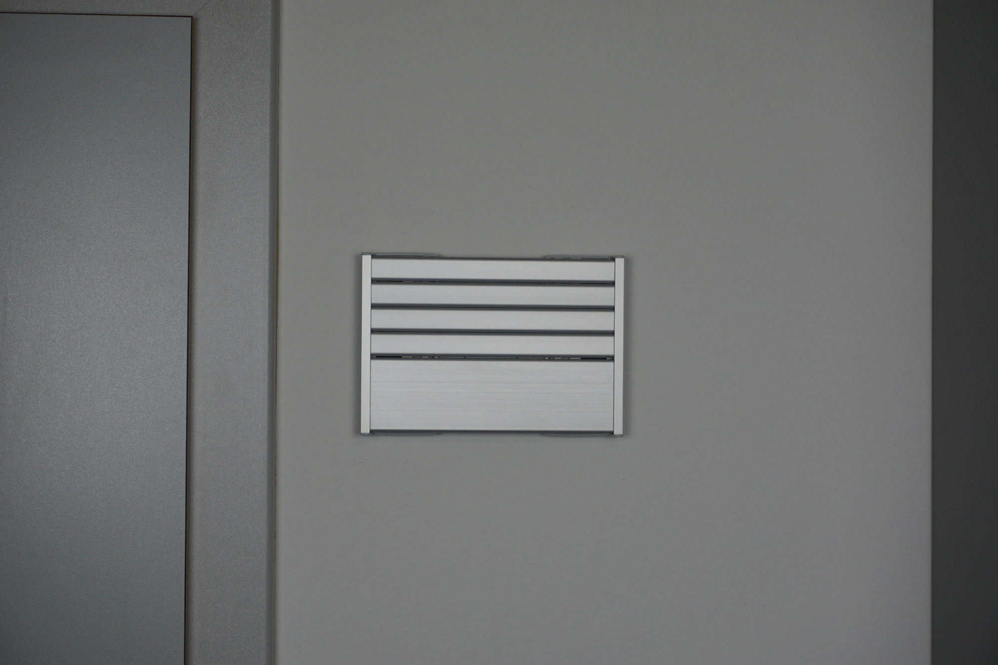 Modulares Paneelsystem für die Innenbeschilderung. Türschilder, Wegweiser und Lagepläne werden aus Text- und Einschubpaneelen gestaltet. Sie sind wechselbar und mitFolie oder Einschubstreifen beschriftbar.