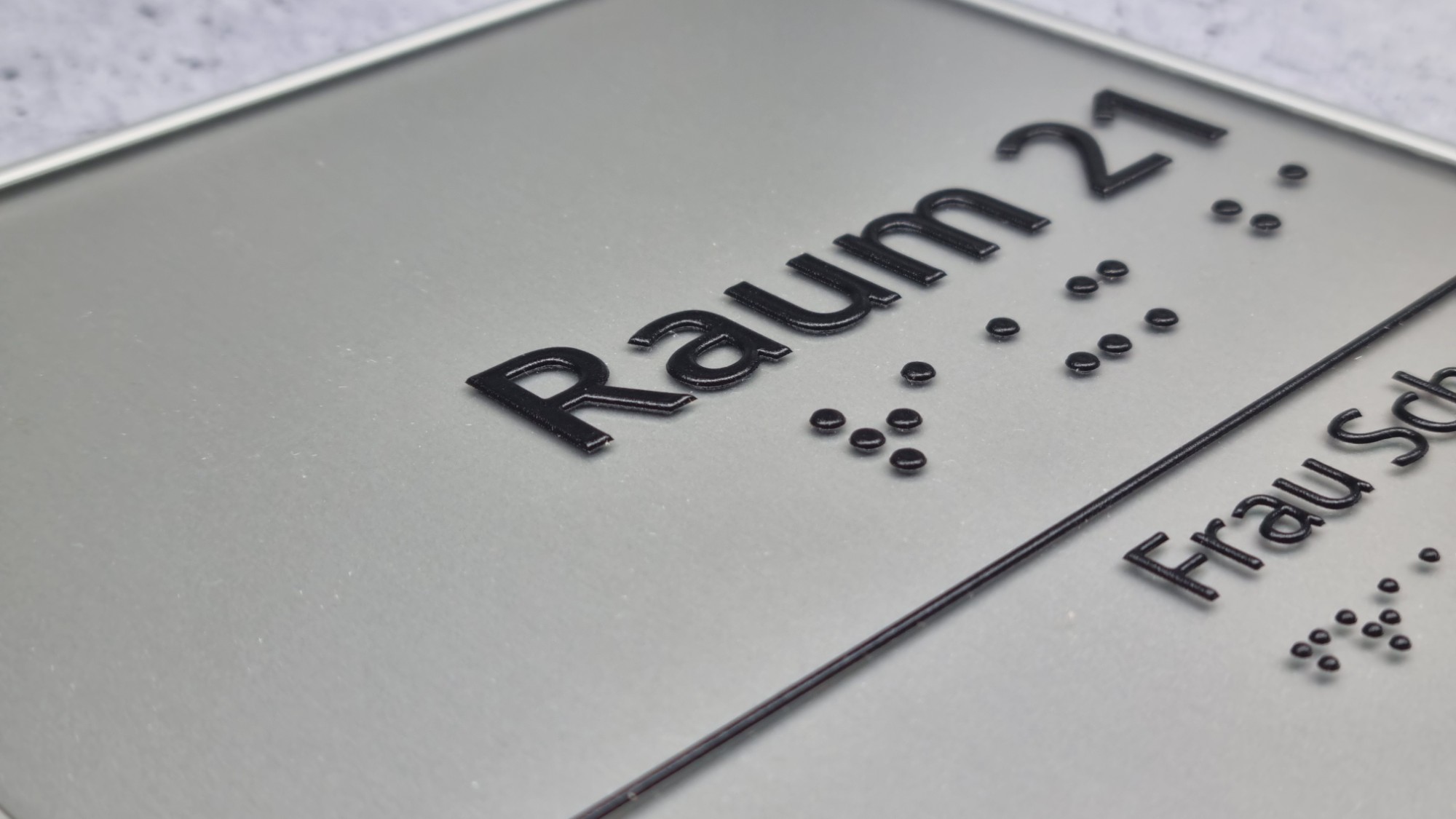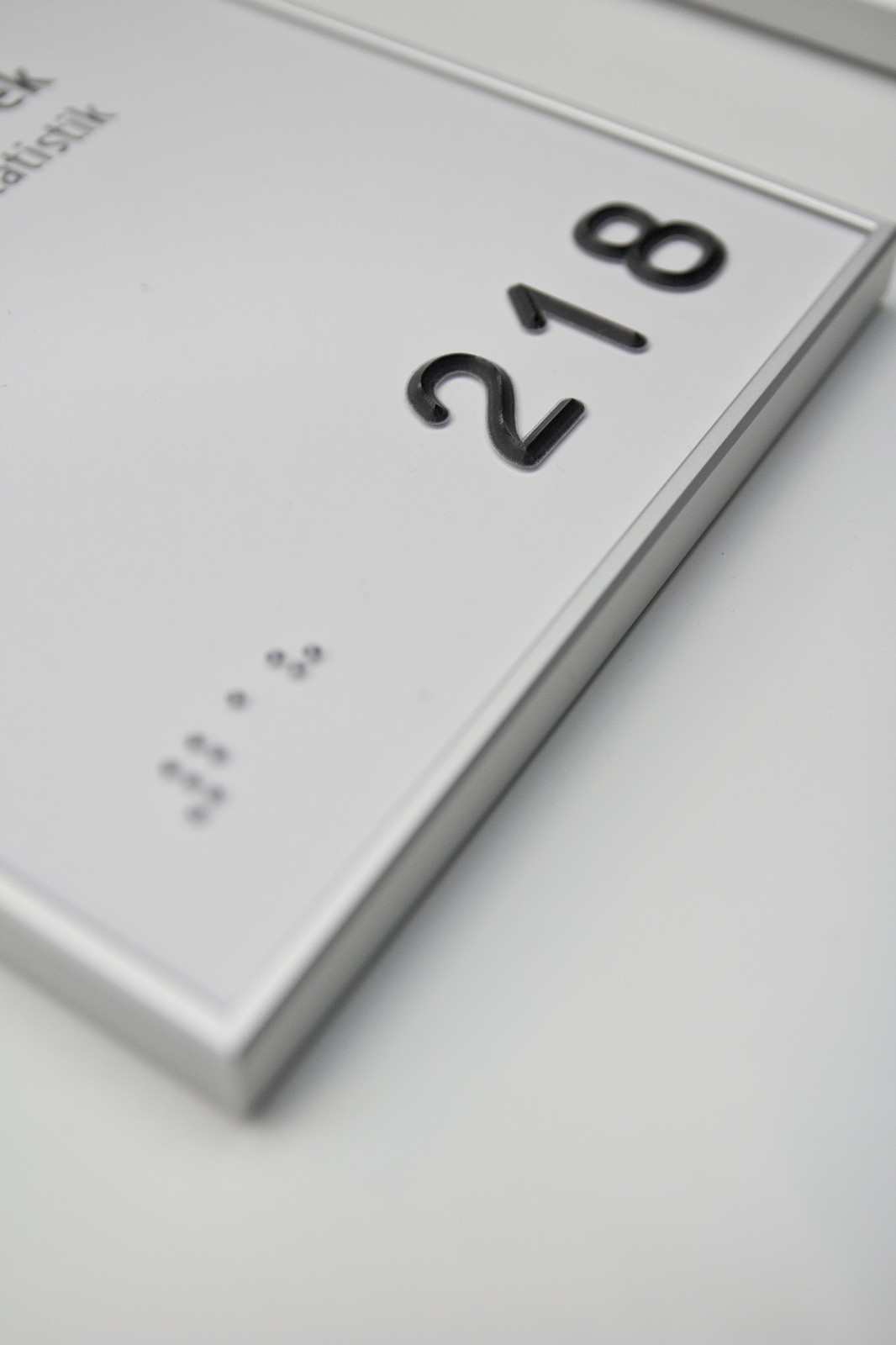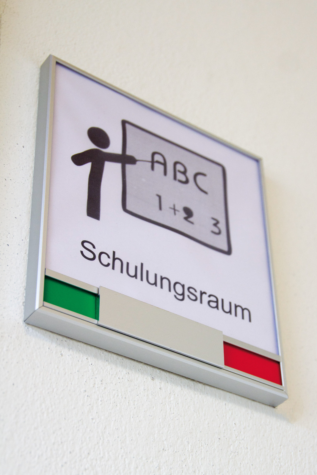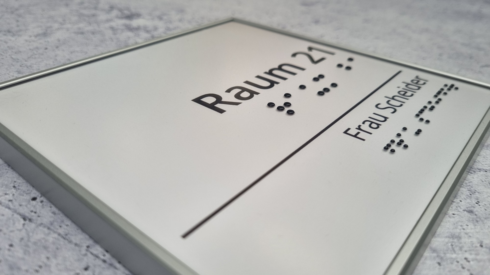 Der schmale umlaufende Rahmen, mit der geringen Bautiefe von nur 12 mm, gibt der Innenbeschilderung von Gebäuden einen dezenten und eleganten Ausdruck.