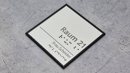 Ein moderner und gleichzeitig dezenter Rahmen wird durch die Grundplatte aus Aluminium oder Stahl stabilisiert. Die Türschilder und Wegweiser sind einfach im Handling und bieten dabei durch drei mögliche Farben für jede Anforderung die passende Lösung.