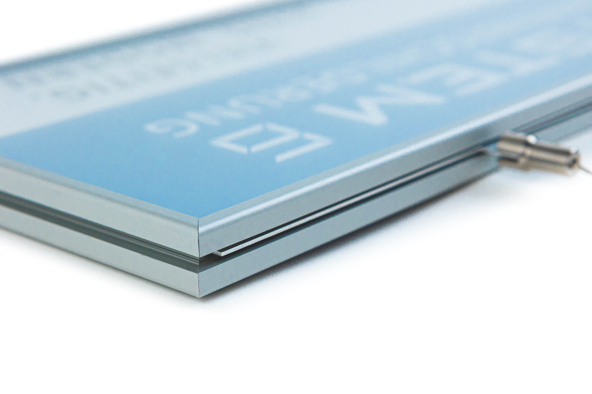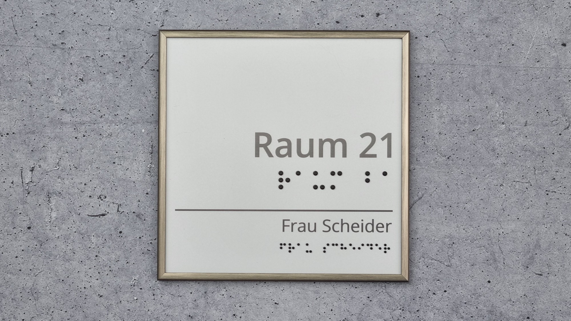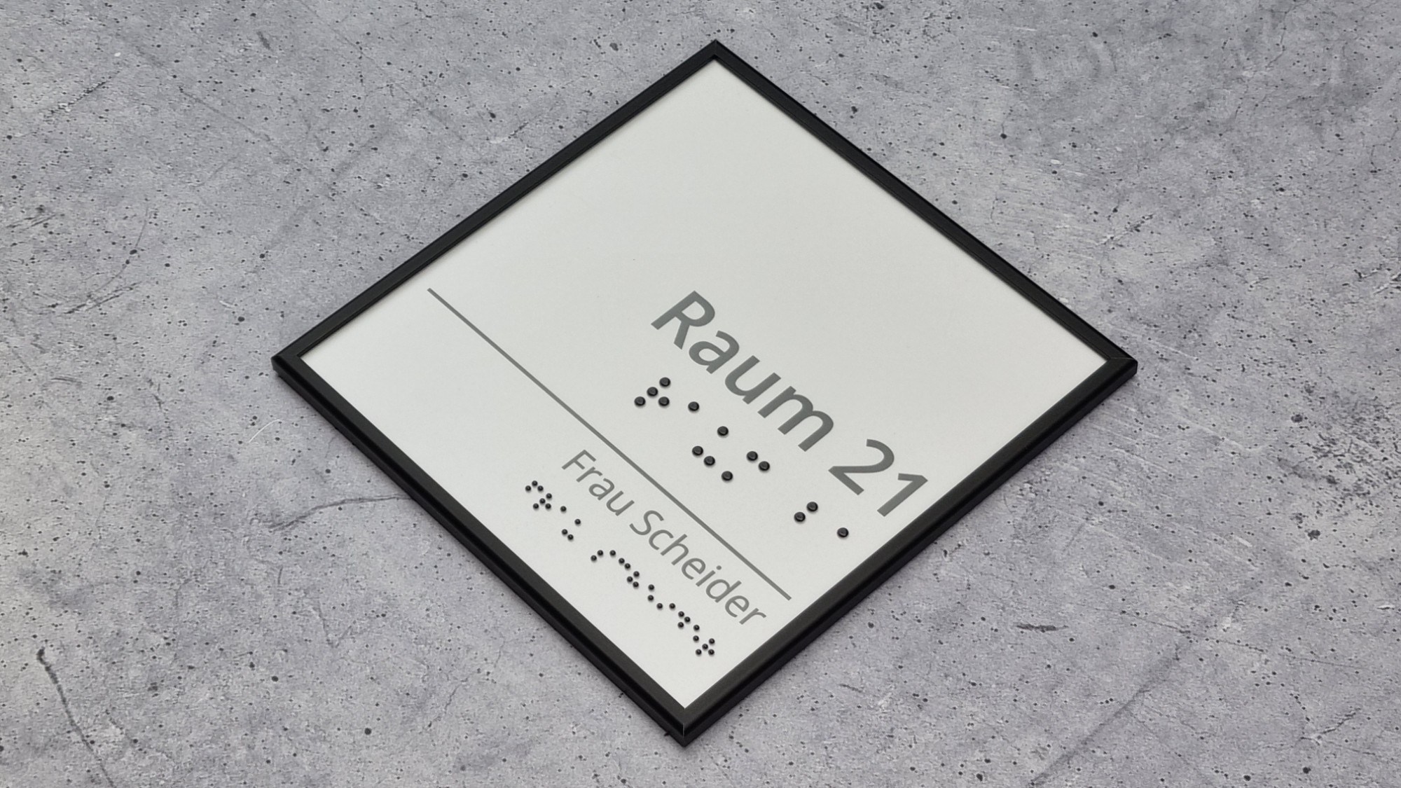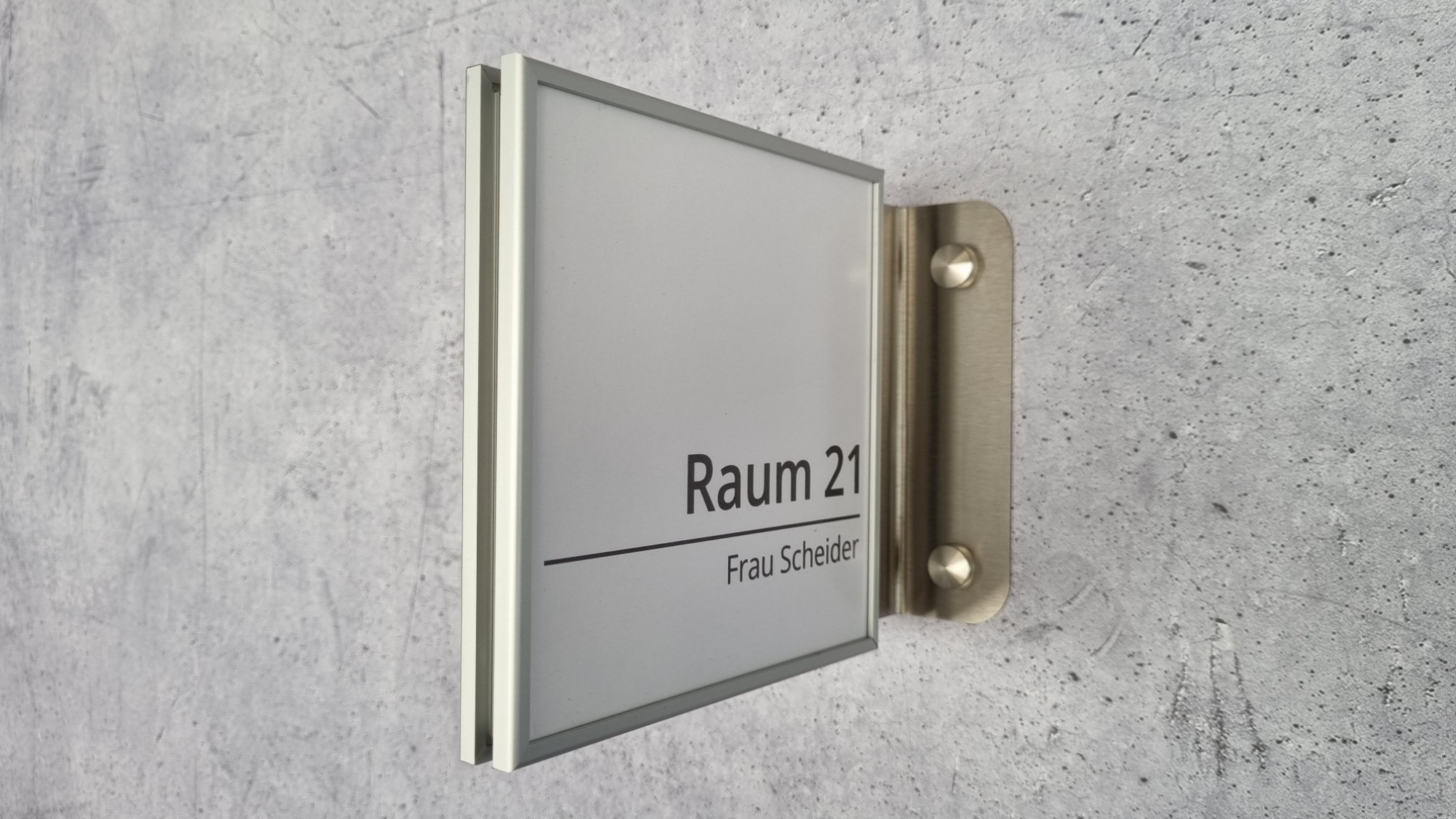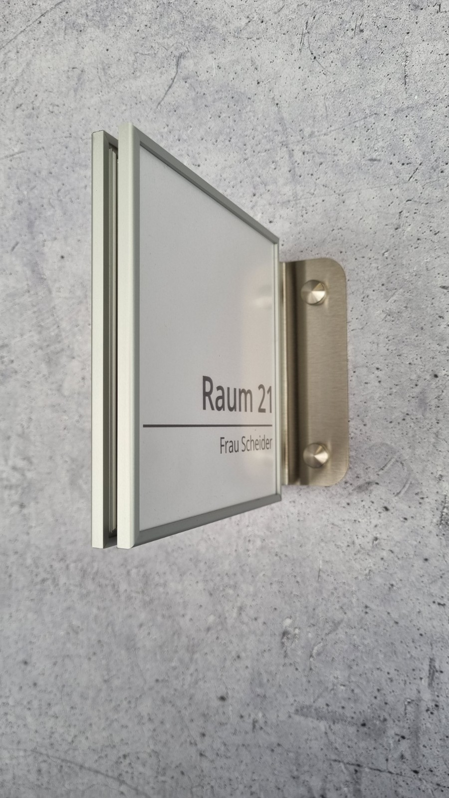 Ein moderner und gleichzeitig dezenter Rahmen wird durch die Grundplatte aus Aluminium oder Stahl stabilisiert. Die Türschilder und Wegweiser sind einfach im Handling und bieten dabei durch drei mögliche Farben für jede Anforderung die passende Lösung.